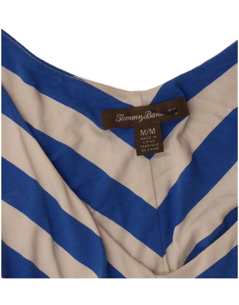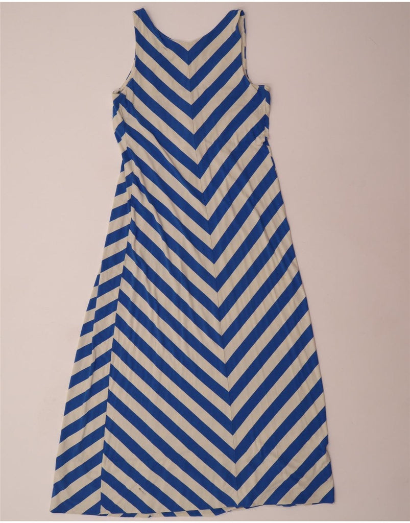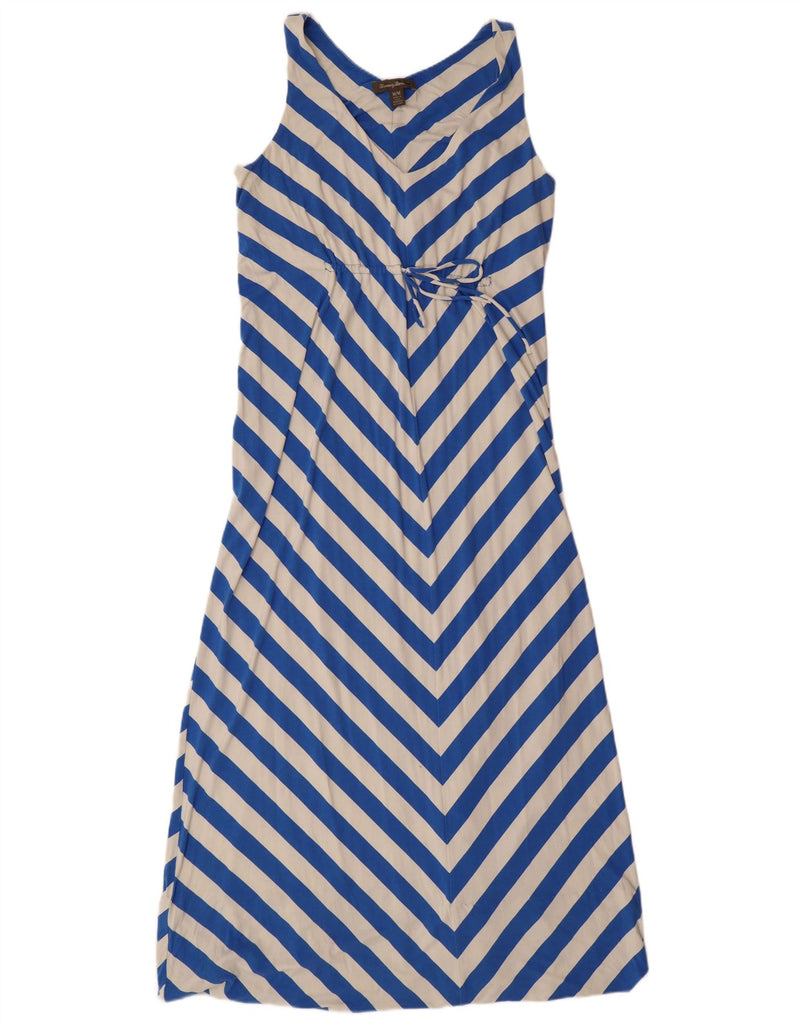 TOMMY BAHAMA Vestido maxi feminino sem mangas UK 12 listrado azul médio