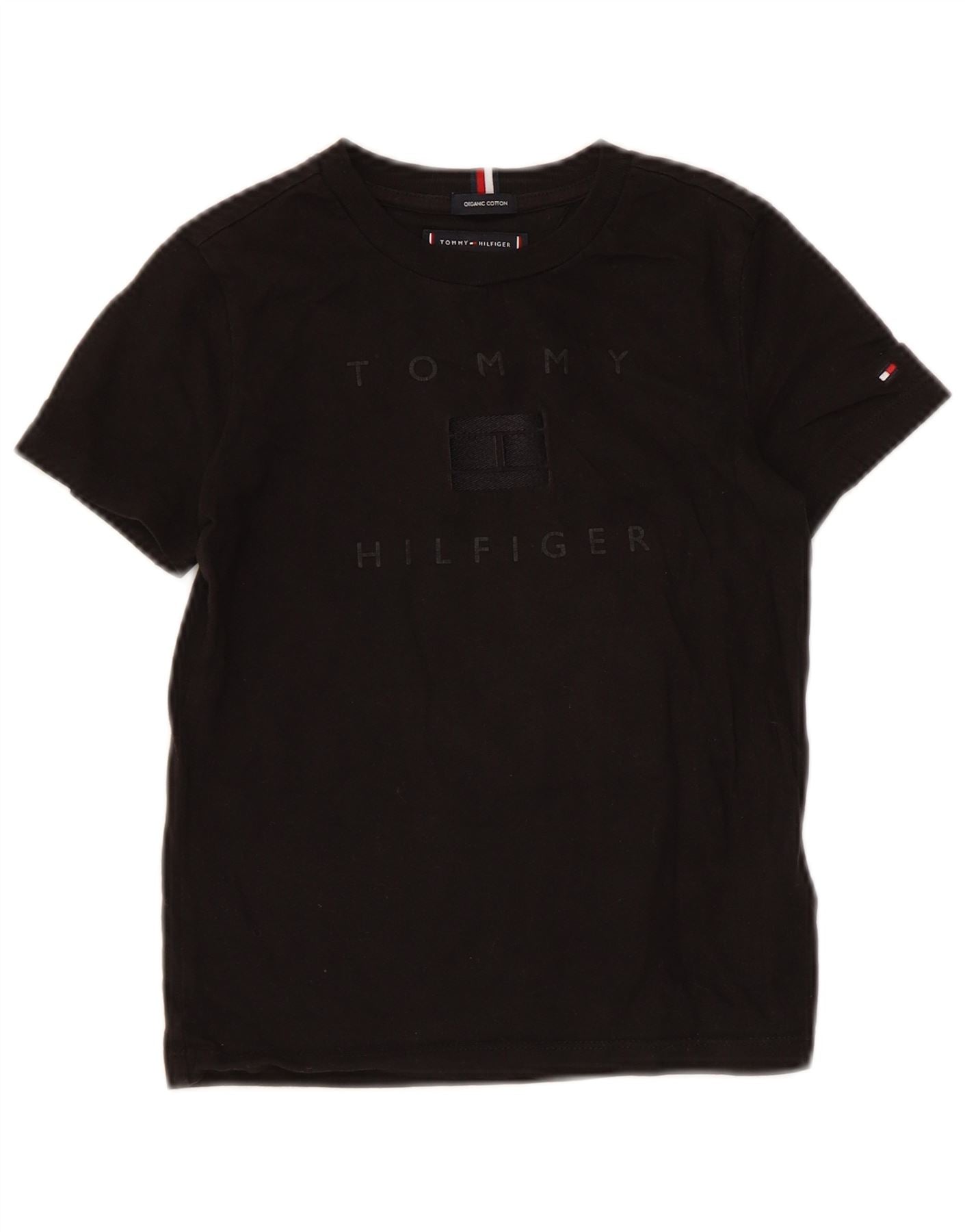 TOMMY HILFIGER Boys Graphic T-Shirt Top 6-7 Years Black Cotton