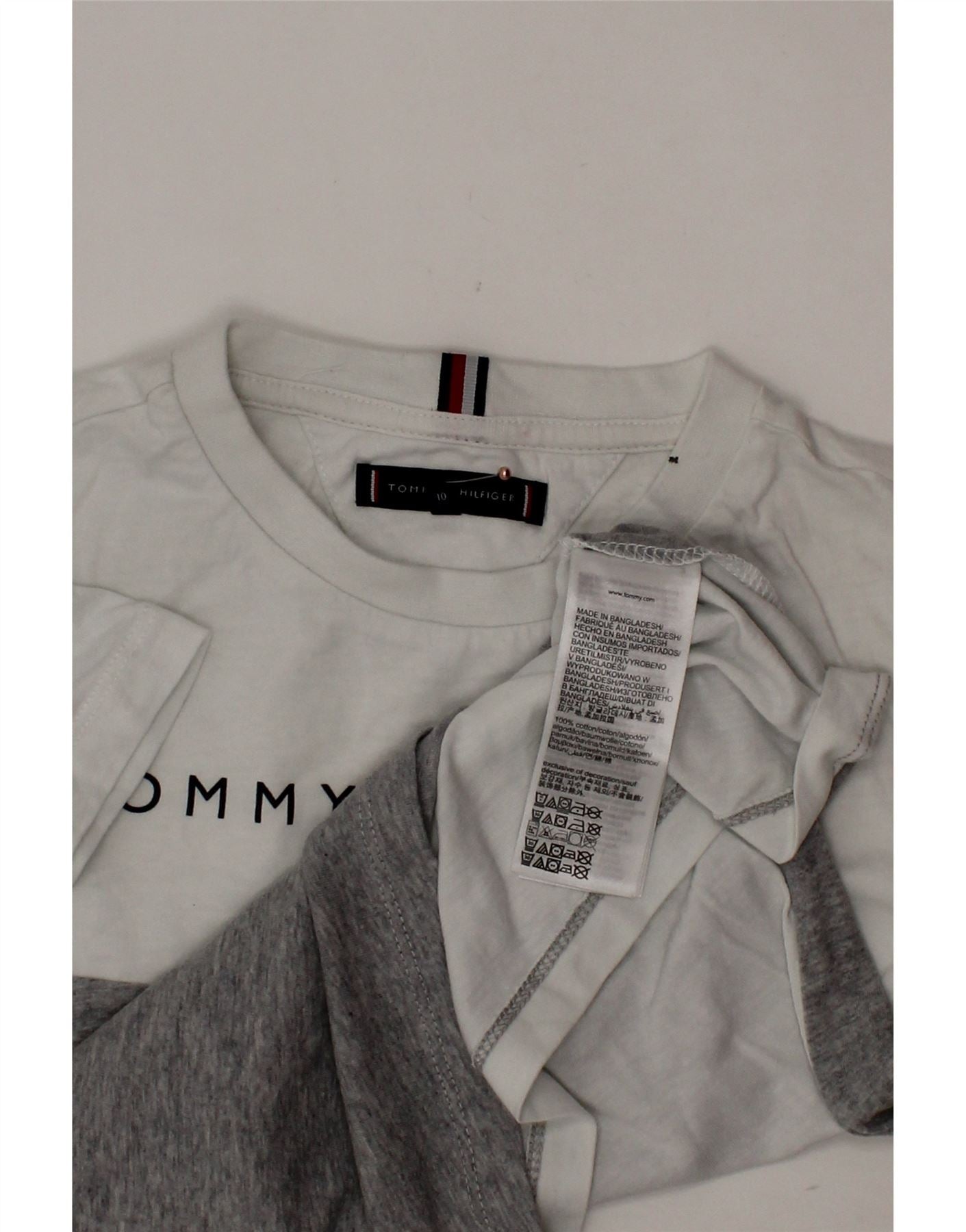 TOMMY HILFIGER Camiseta gráfica masculina 9-10 anos cinza algodão colorblock