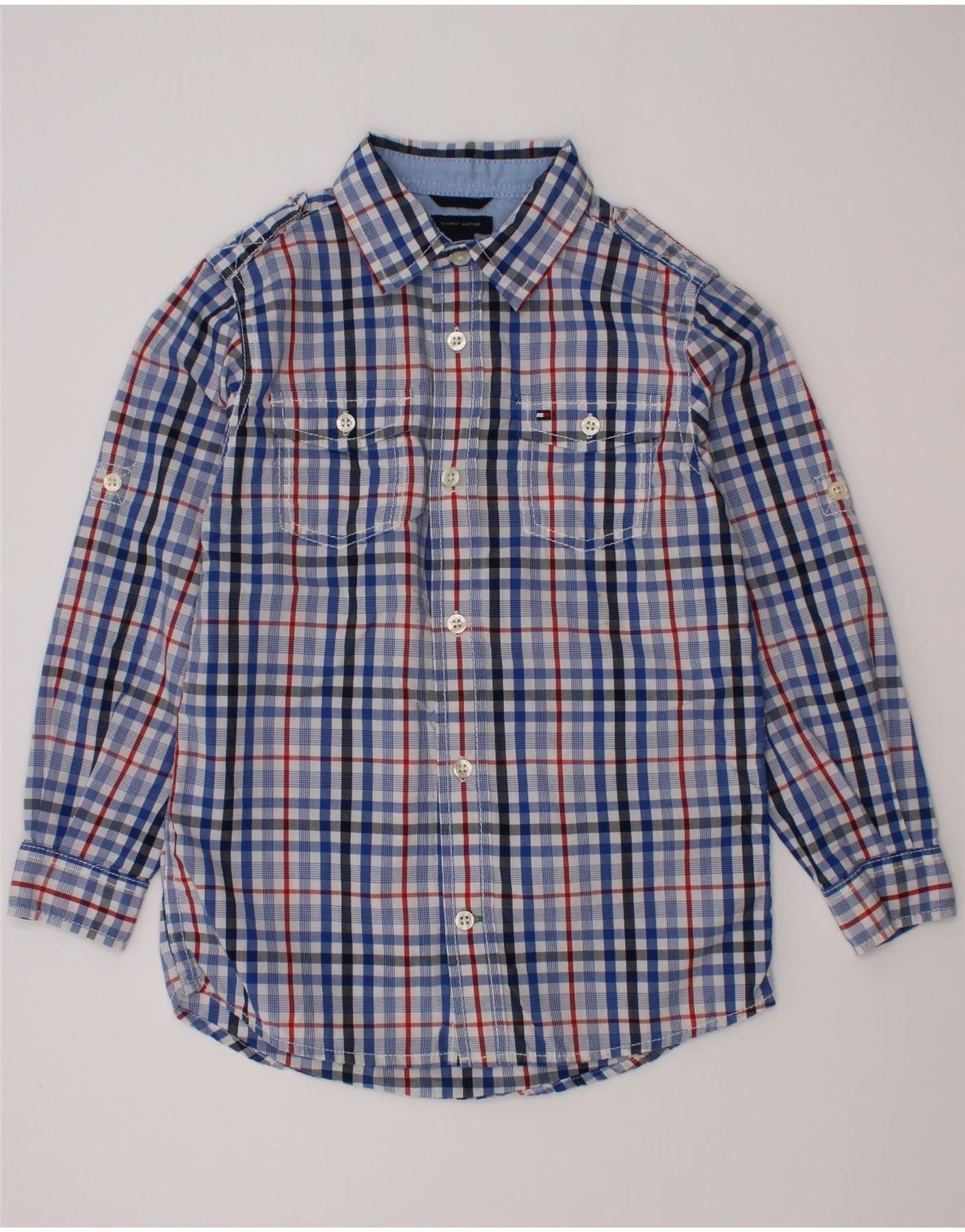Camisa masculina Tommy Hilfiger 5-6 anos algodão xadrez azul