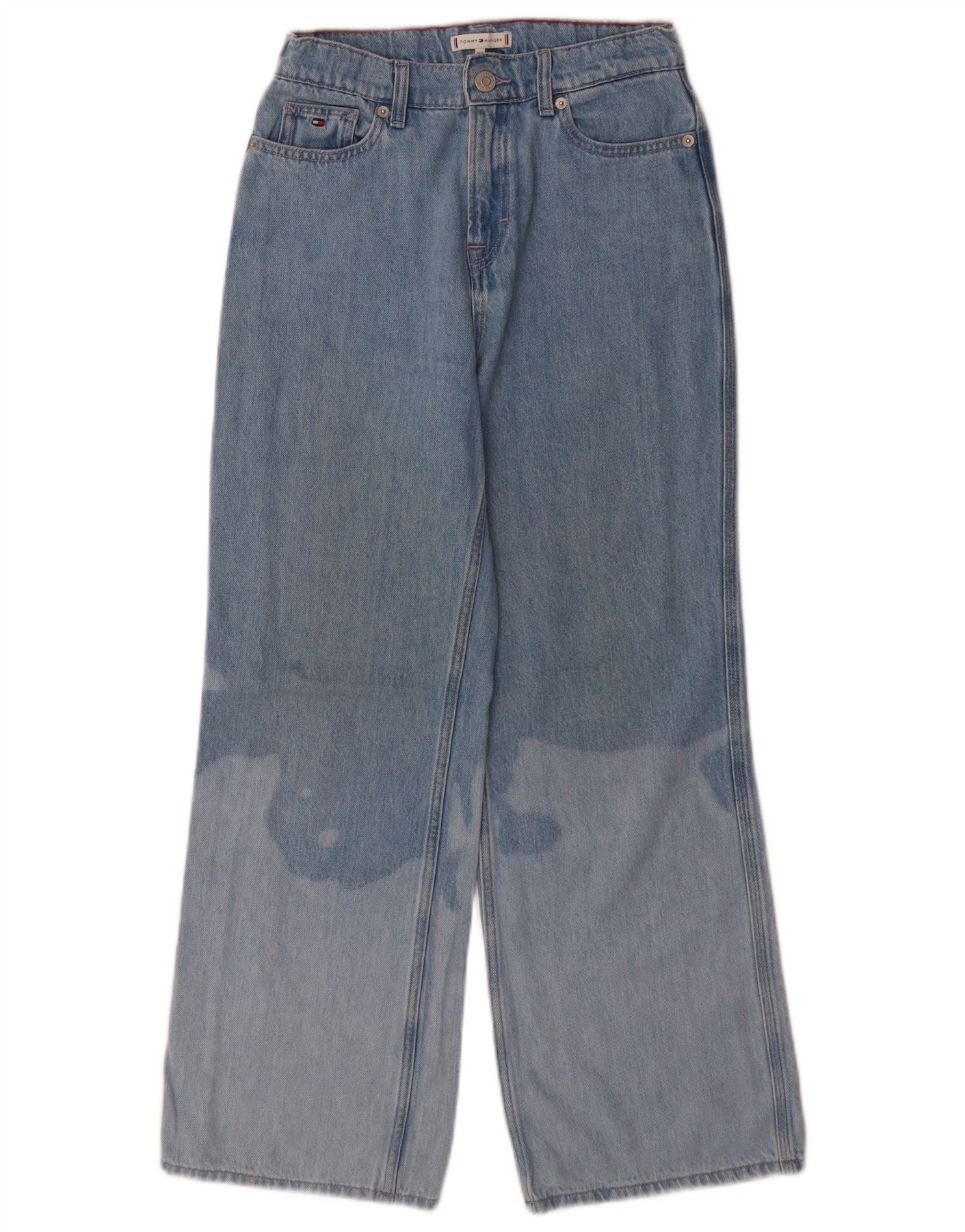 TOMMY HILFIGER Jeans femininos com lavagem ácida de perna larga 13-14 anos W26 L27 Azul