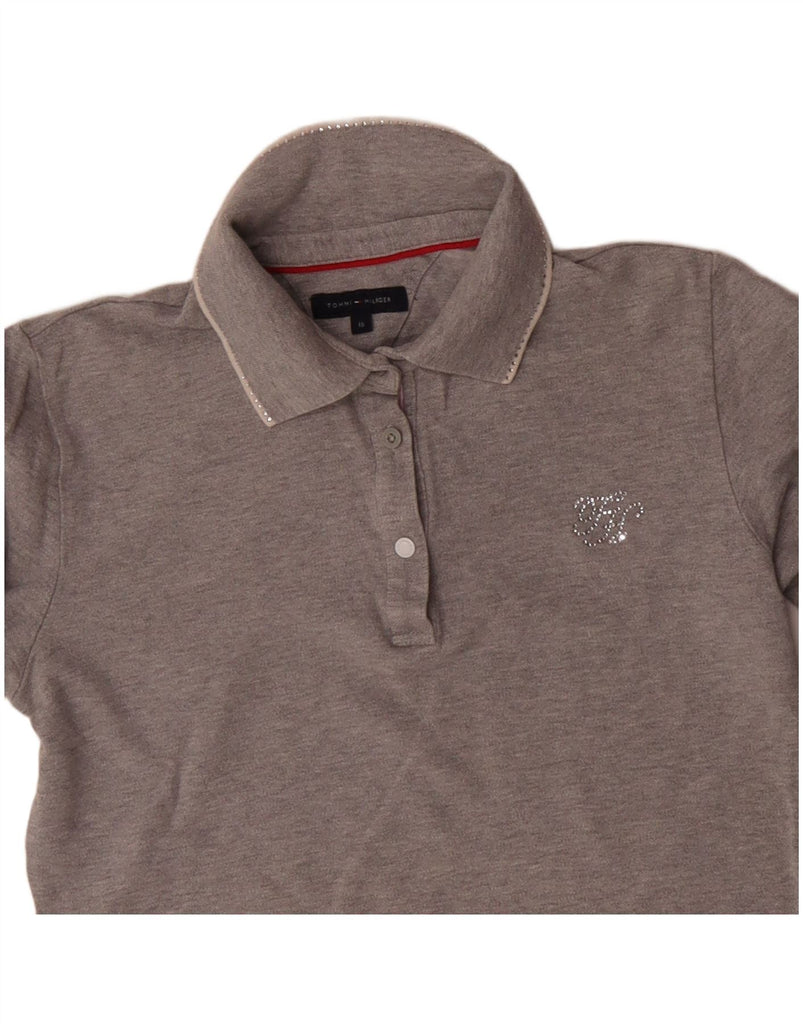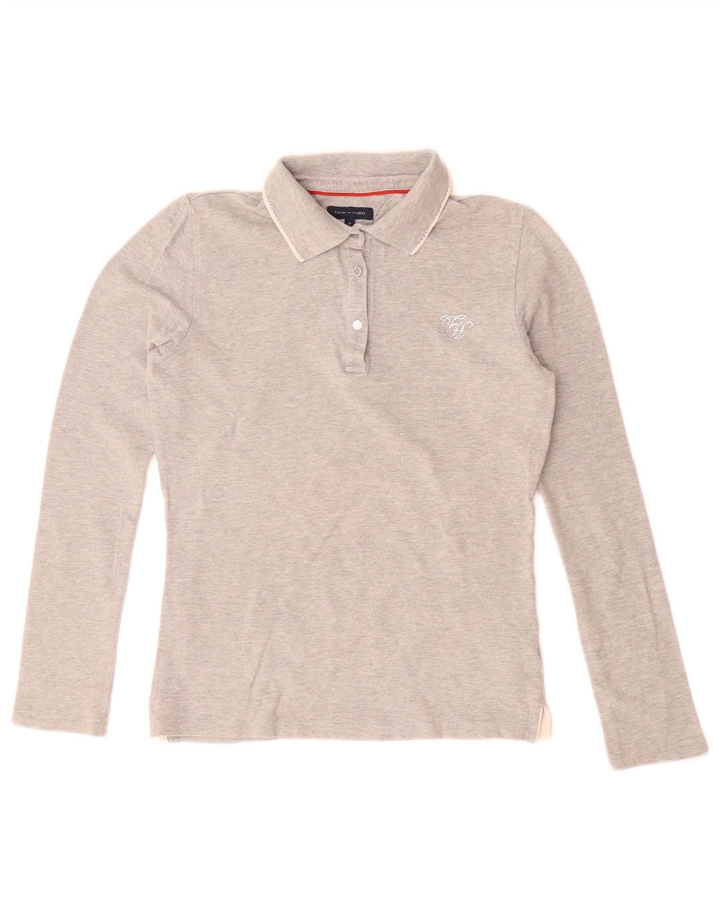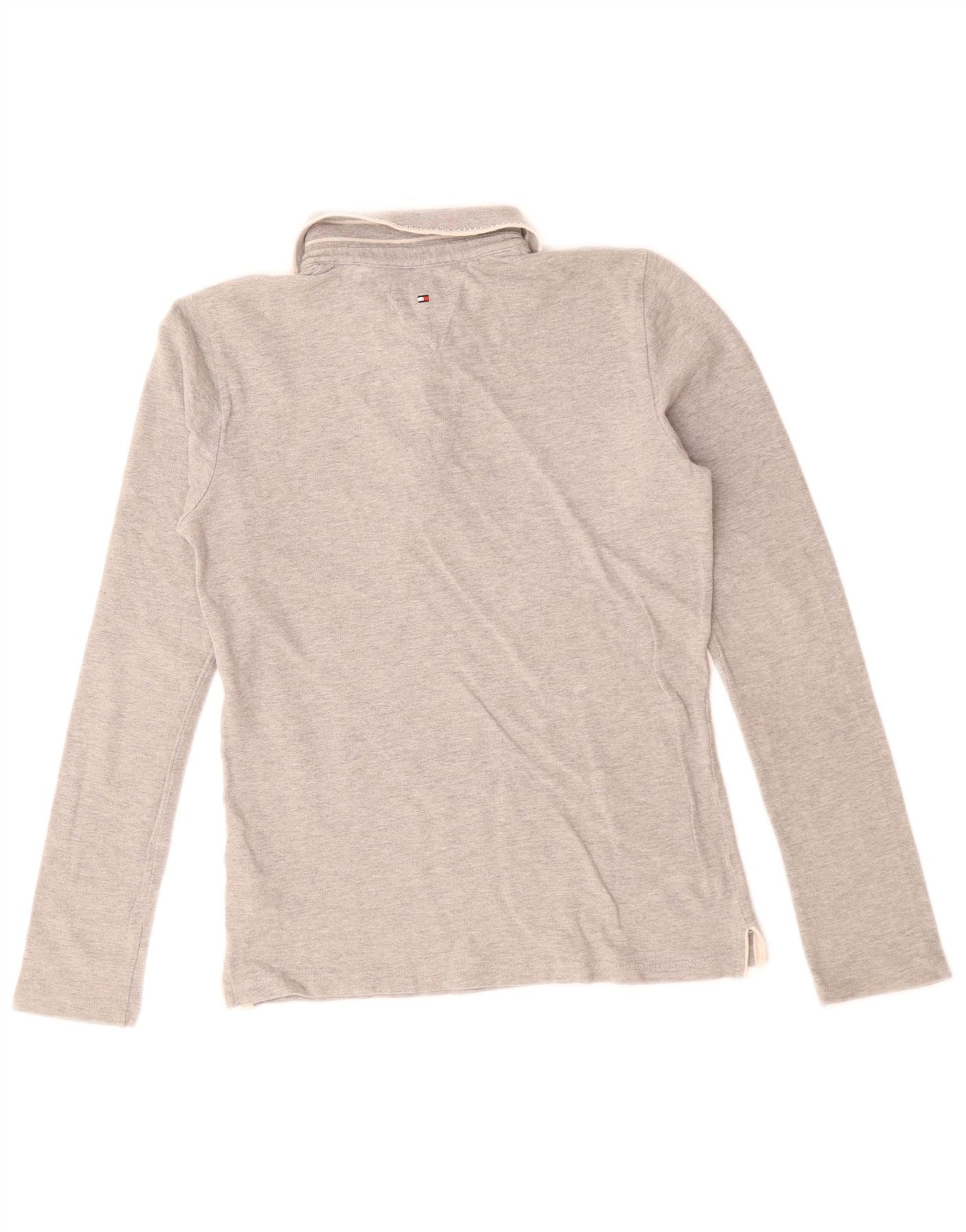 TOMMY HILFIGER Girls Long Sleeve Polo Shirt 15-16 Years Grey Cotton