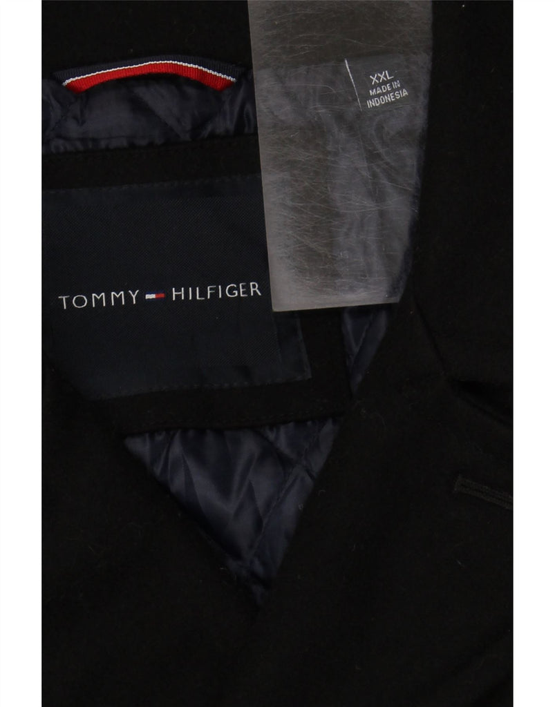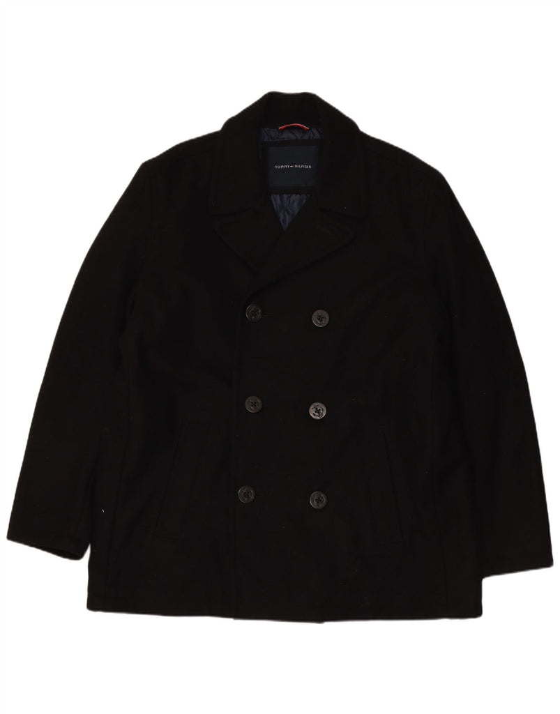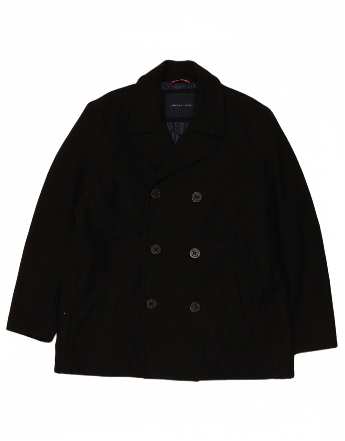 TOMMY HILFIGER Masculino Pea Coat Reino Unido 44 2XL Lã Preta