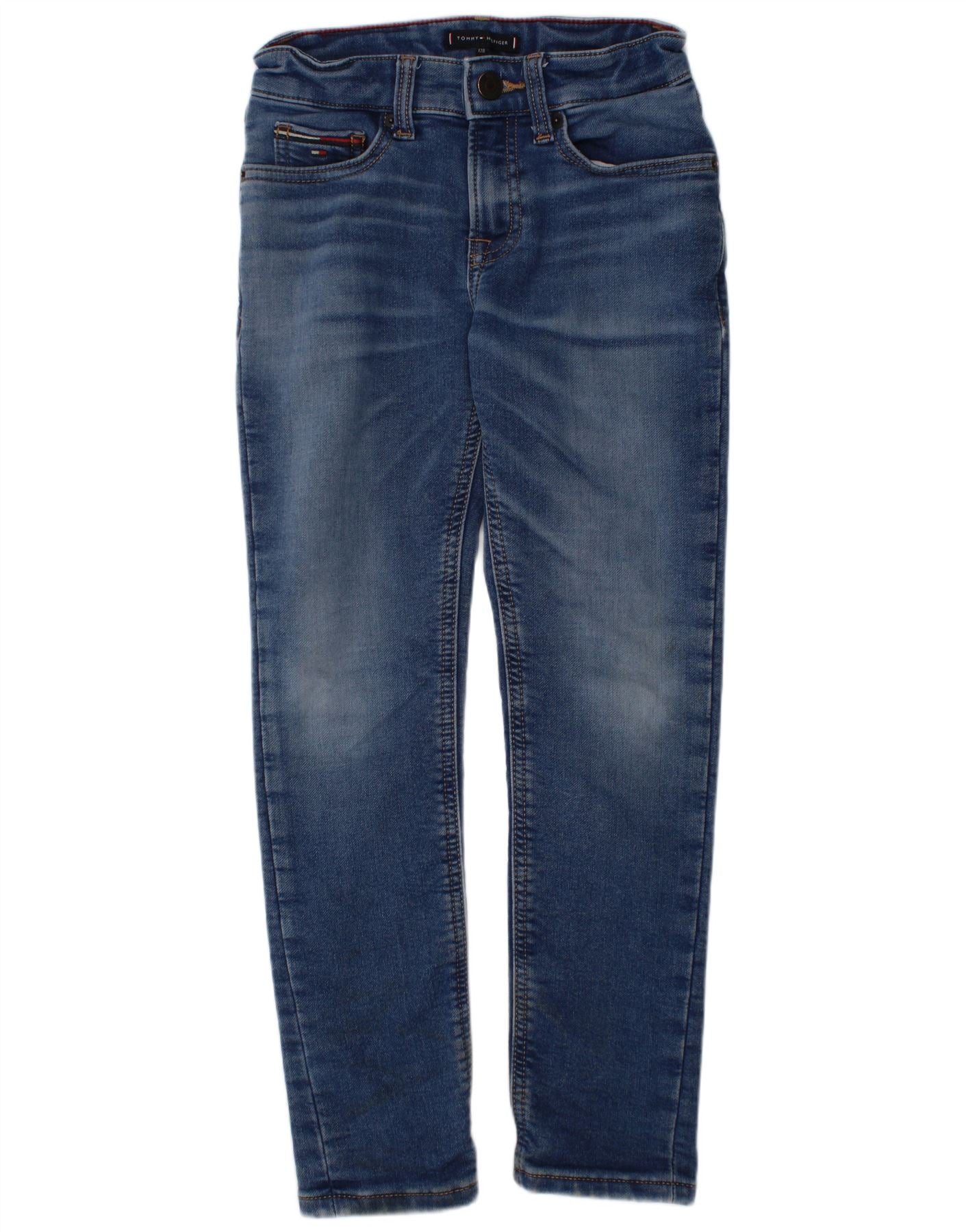 TOMMY HILFIGER Meninos Jeans Skinny 7-8 Anos W23 L22 Azul Algodão