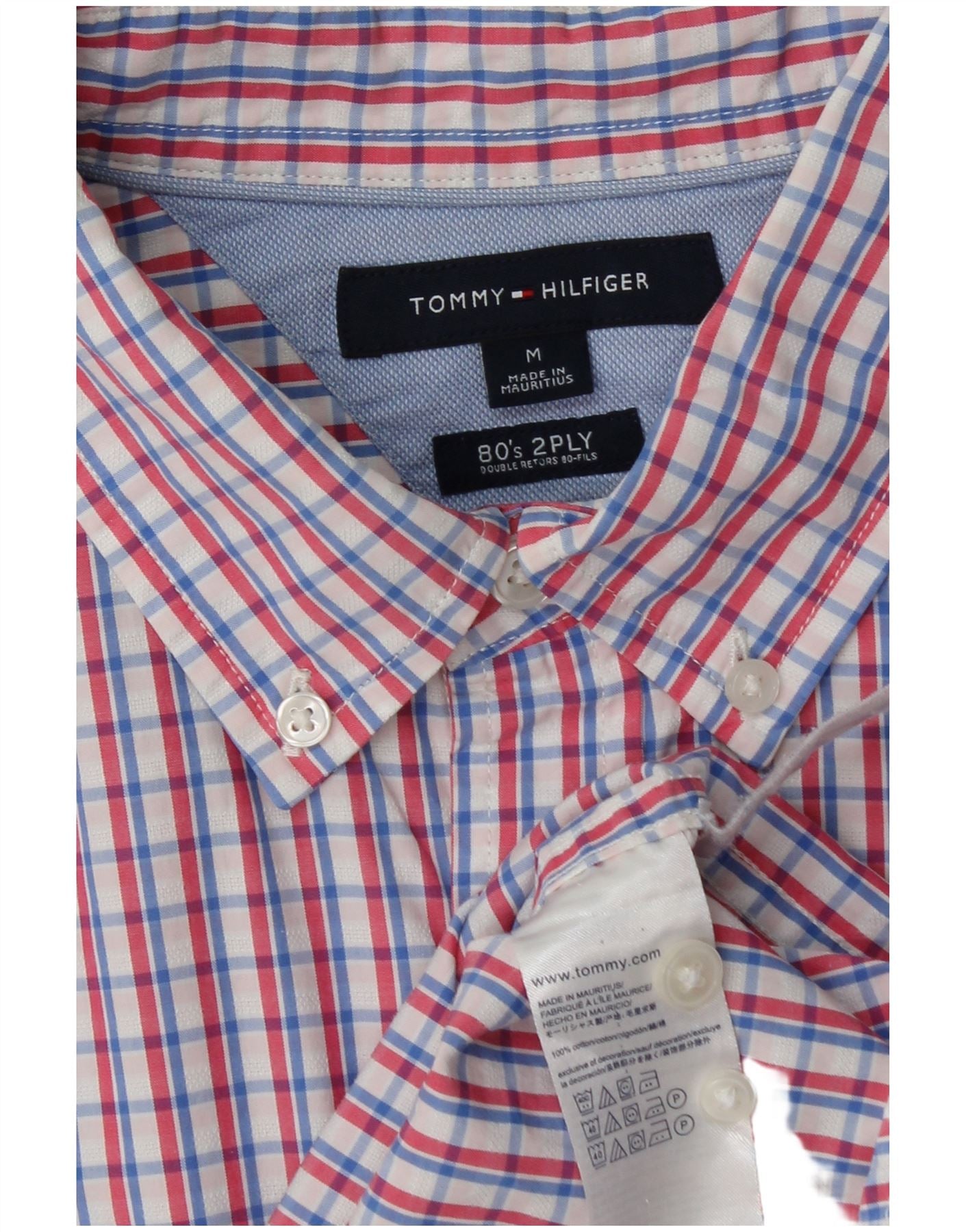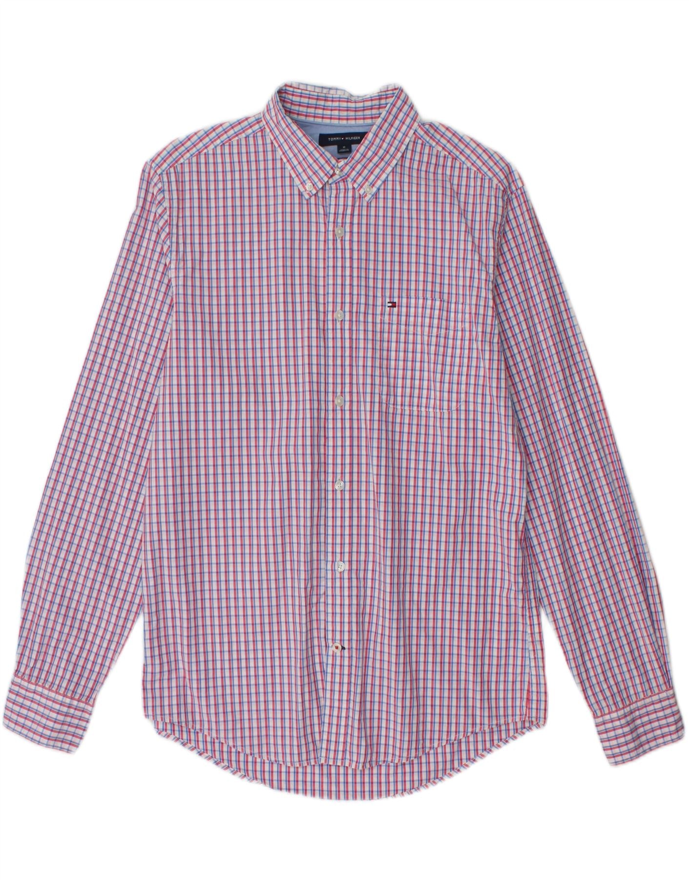 TOMMY HILFIGER Camisa masculina de duas camadas dos anos 80, algodão xadrez médio multicolorido