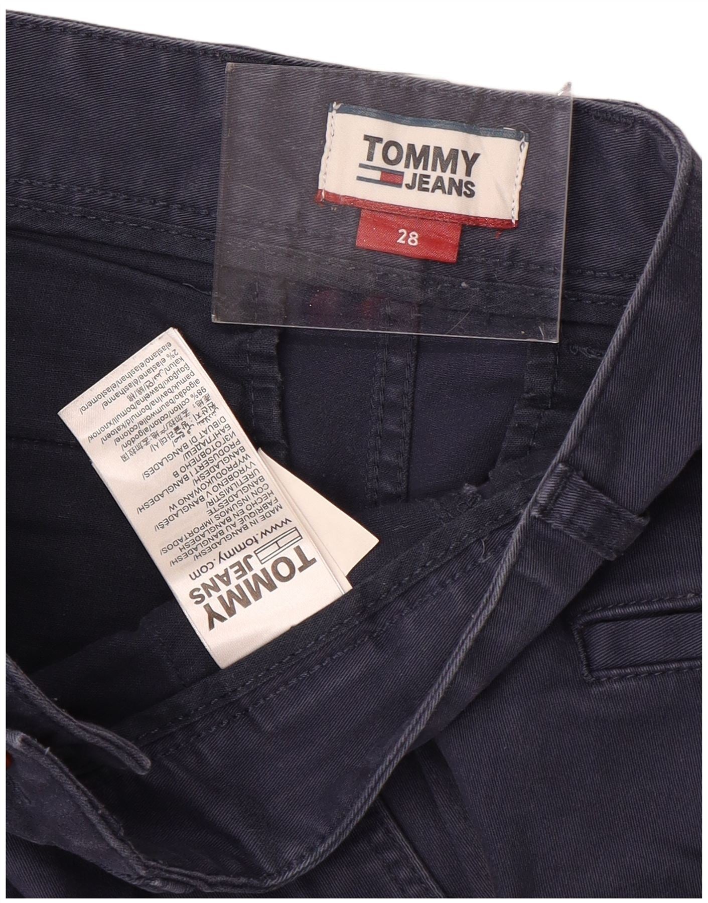 Shorts Chino masculino TOMMY HILFIGER W28 pequeno algodão azul marinho