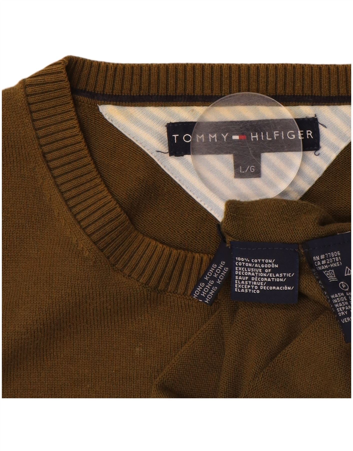 TOMMY HILFIGER Mens Crew Neck Jumper Sweater Large Brown Cotton