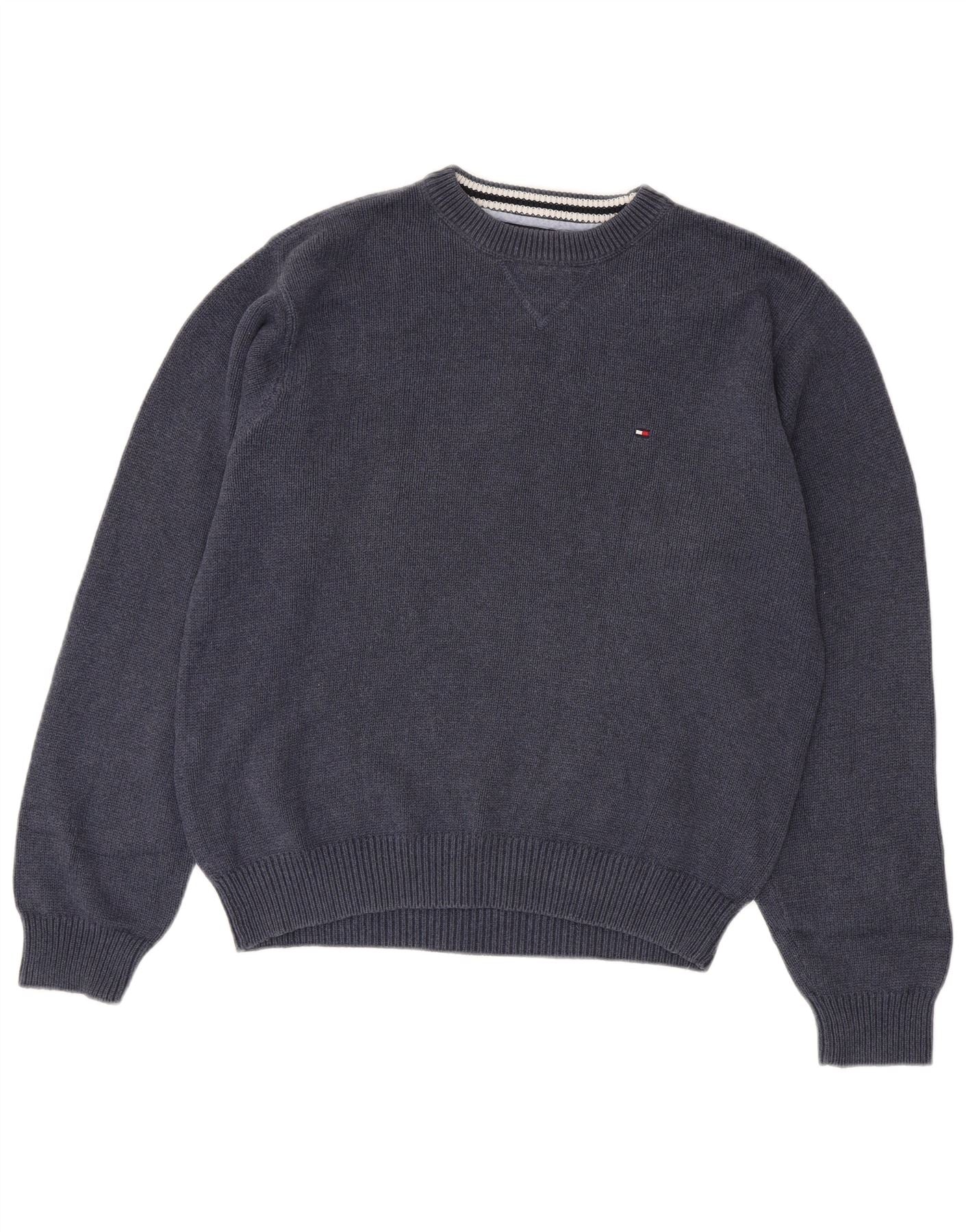 Suéter masculino TOMMY HILFIGER com gola redonda, algodão azul marinho médio