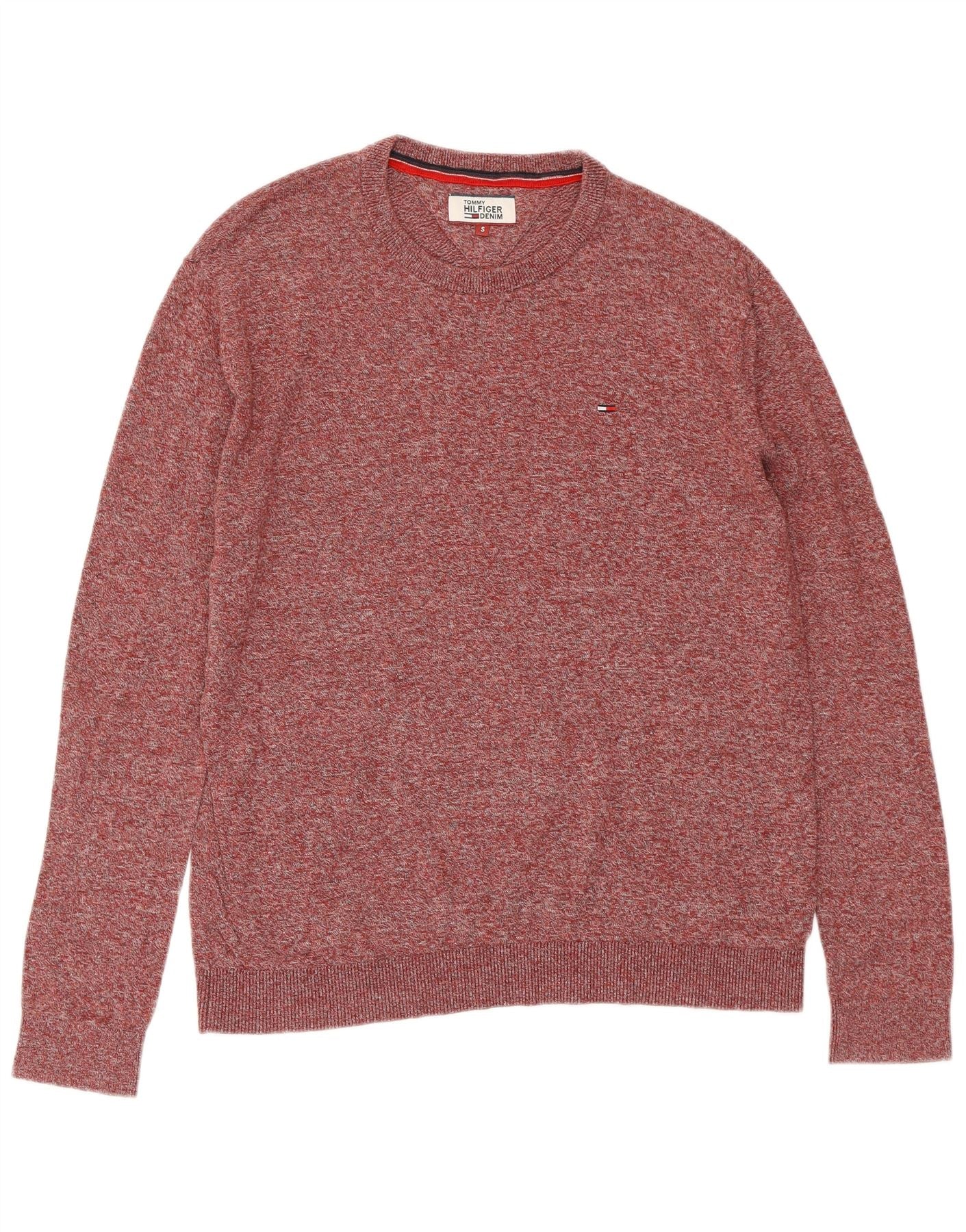Suéter masculino TOMMY HILFIGER com gola redonda, pequeno algodão borgonha