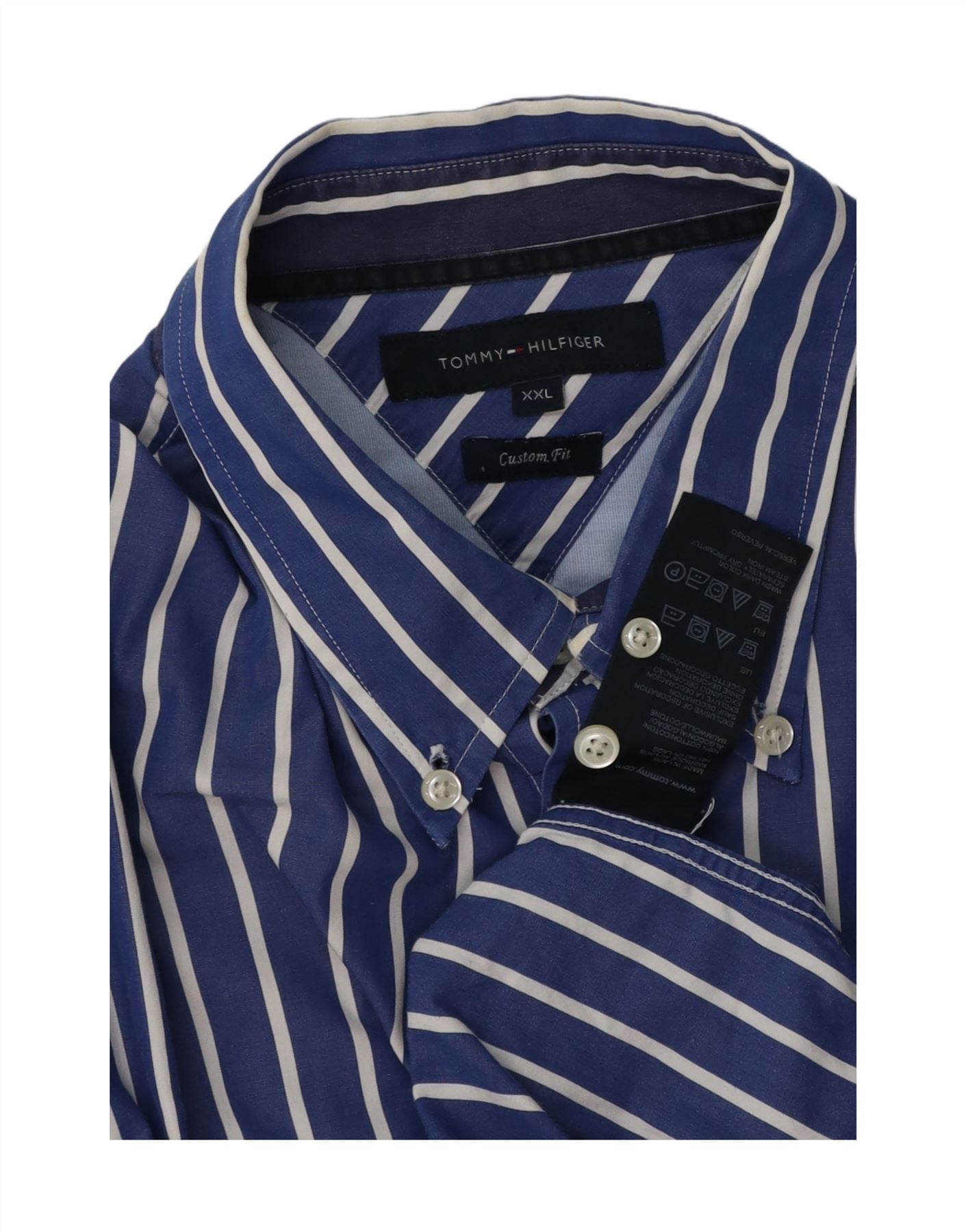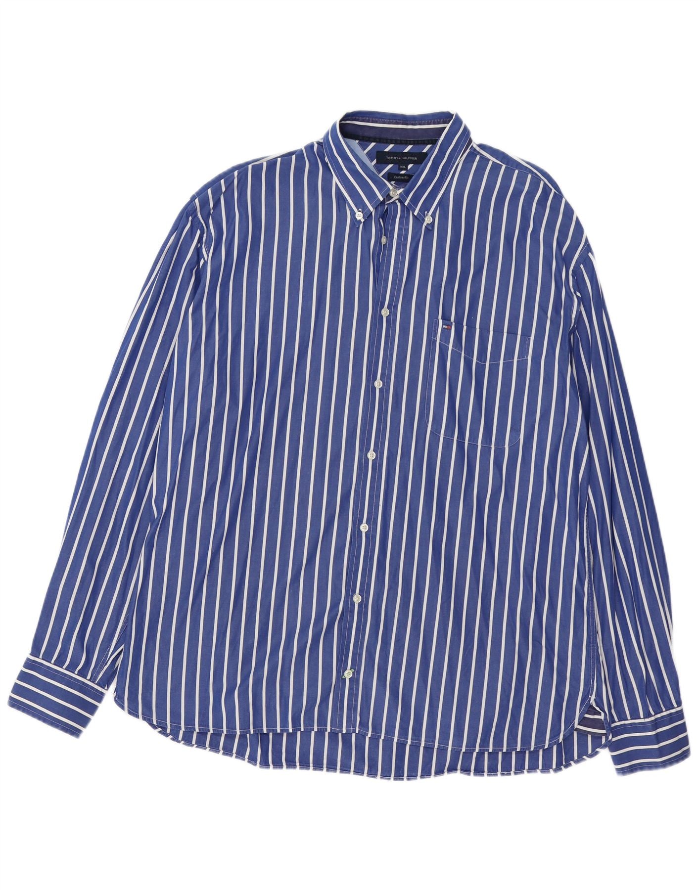 Camisa masculina TOMMY HILFIGER Custom Fit 2XL algodão listrado azul