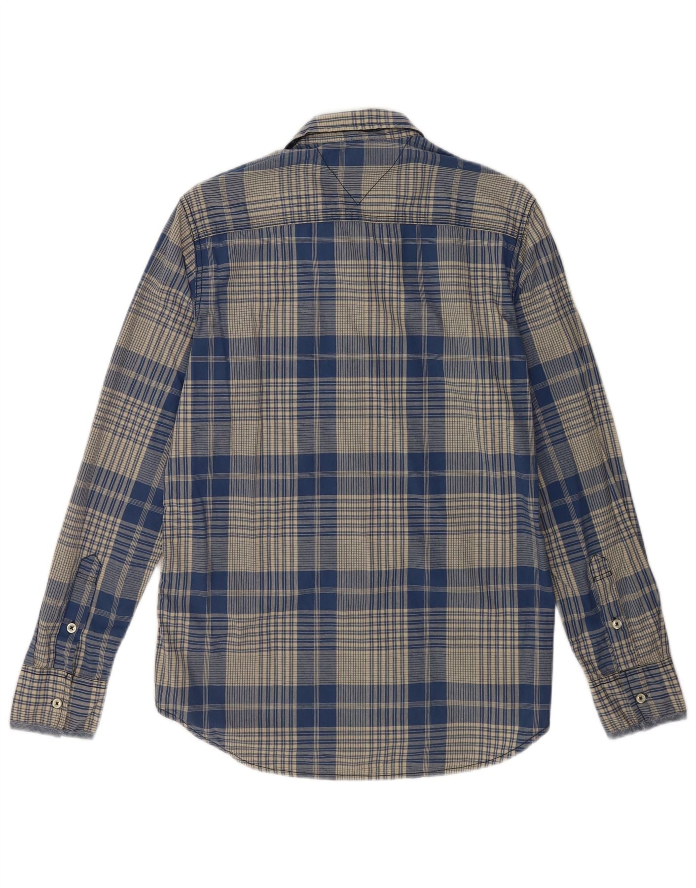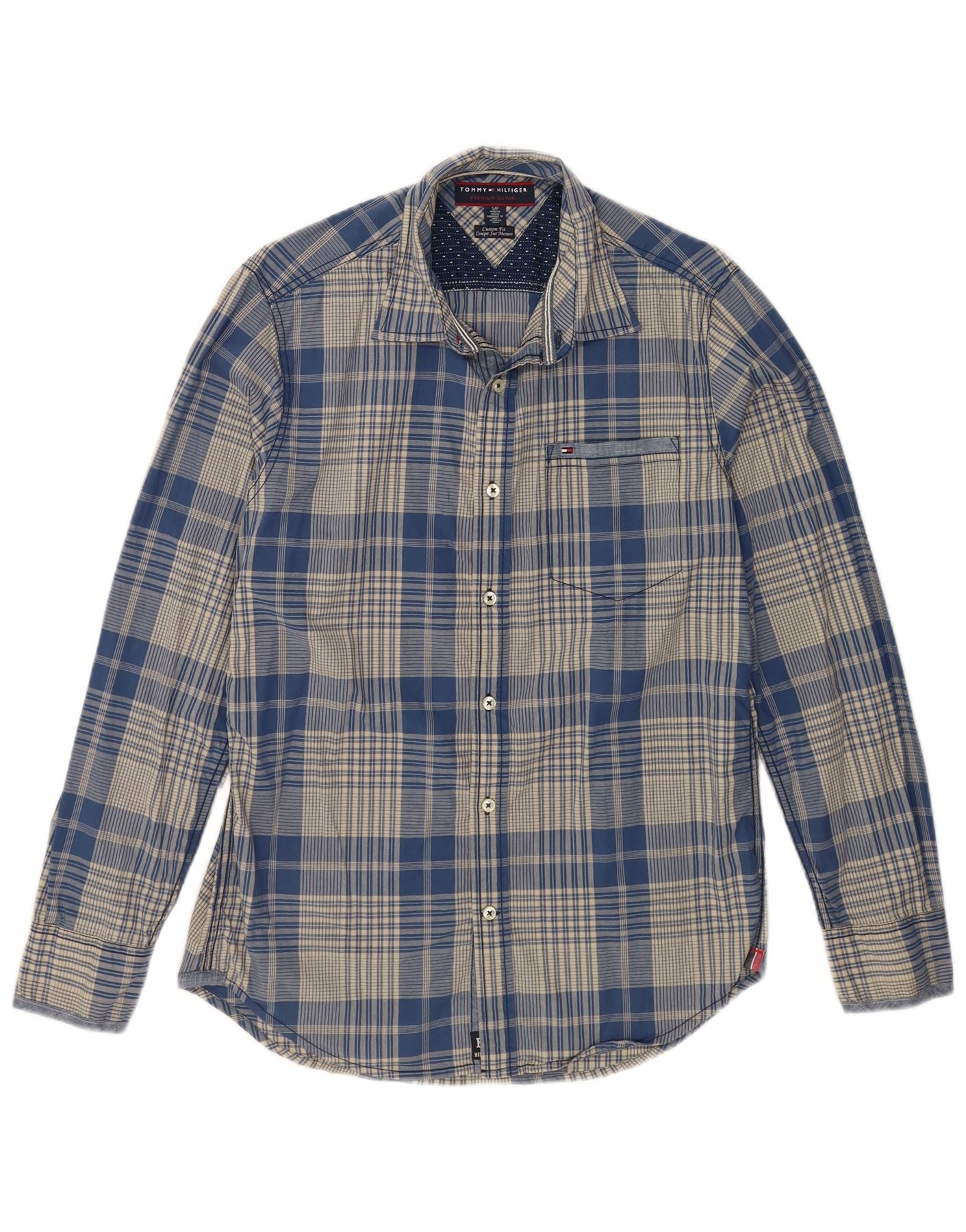 Camisa masculina TOMMY HILFIGER Custom Fit pequena de algodão xadrez azul