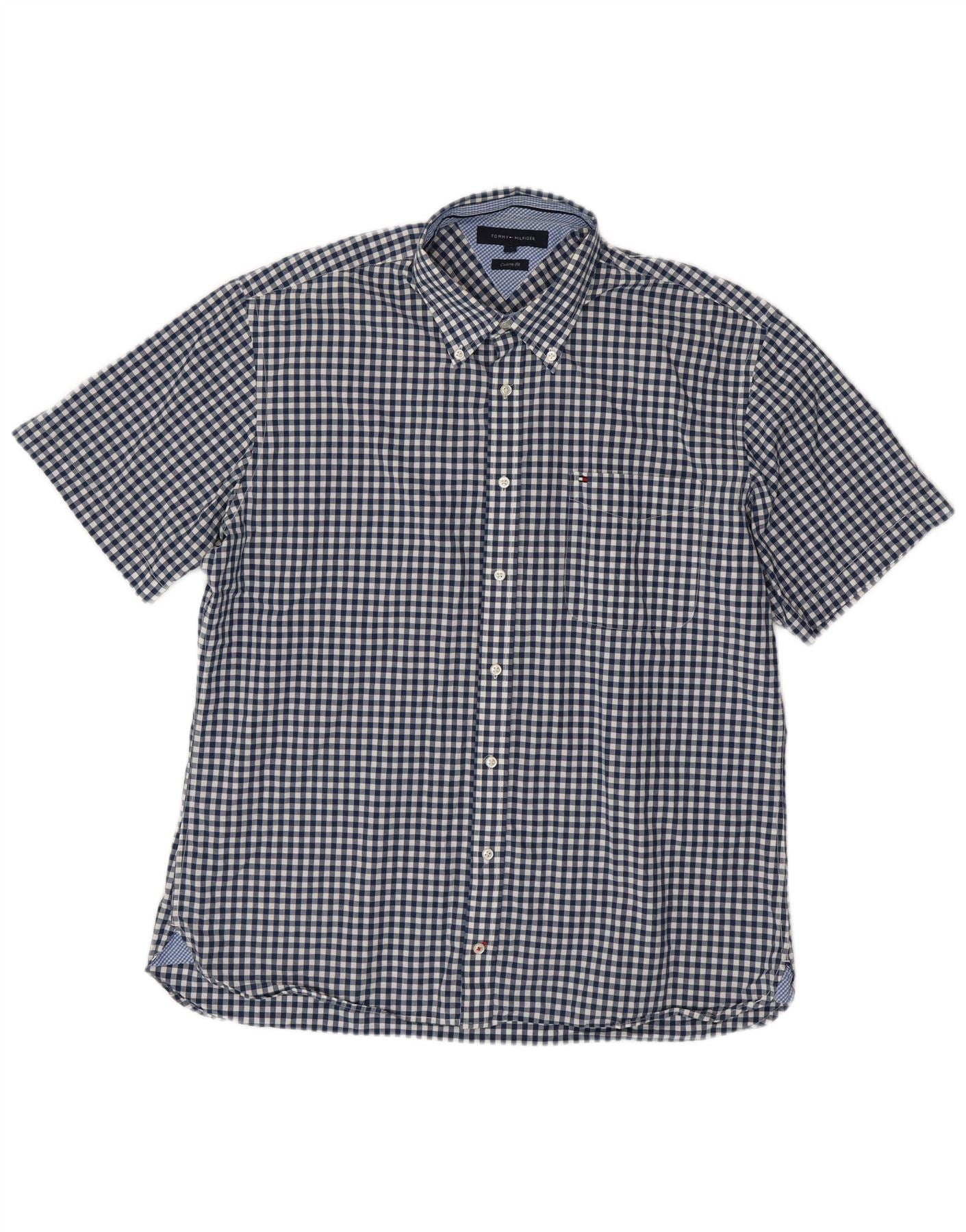 Camisa masculina TOMMY HILFIGER de manga curta com ajuste personalizado XL azul marinho guingão