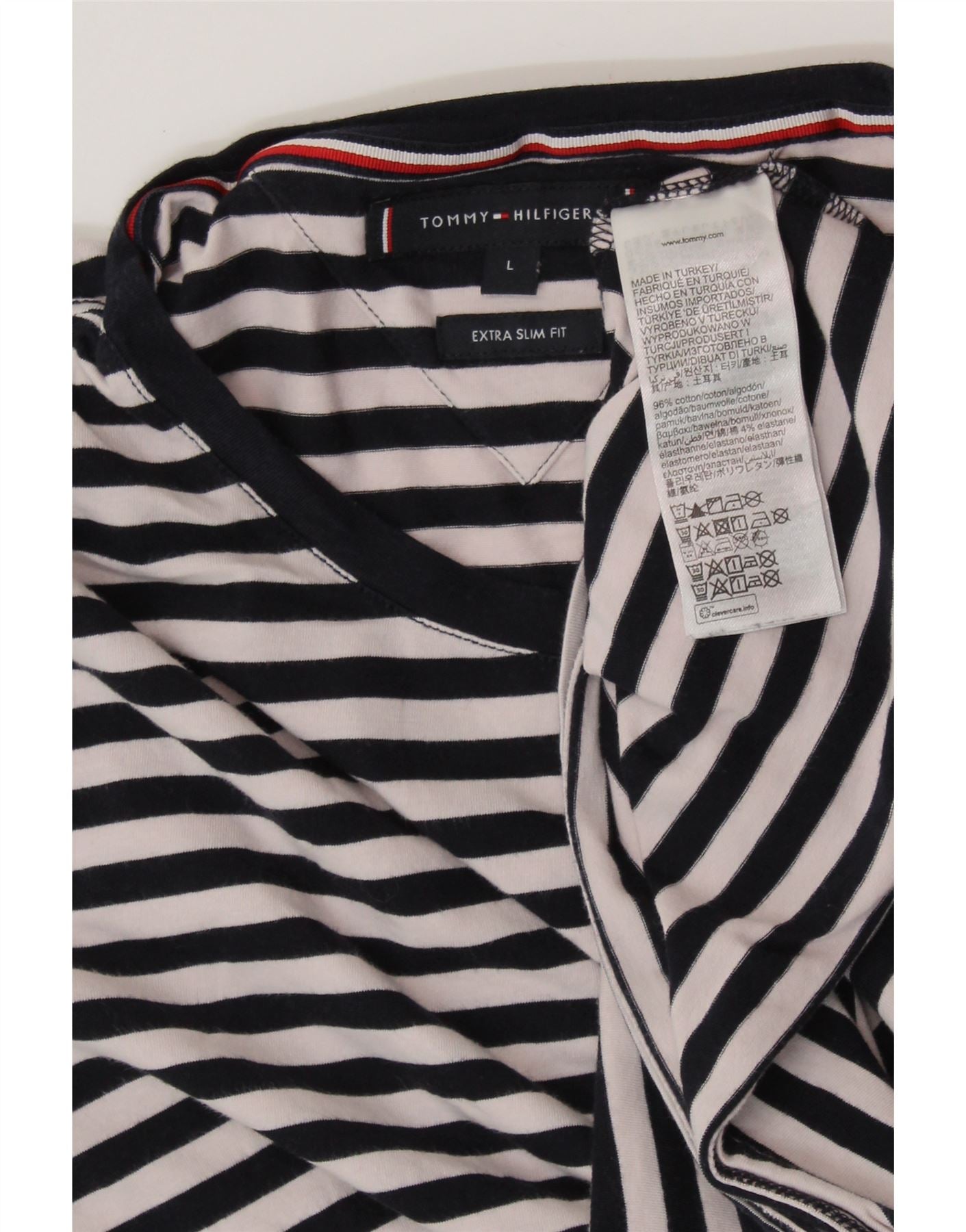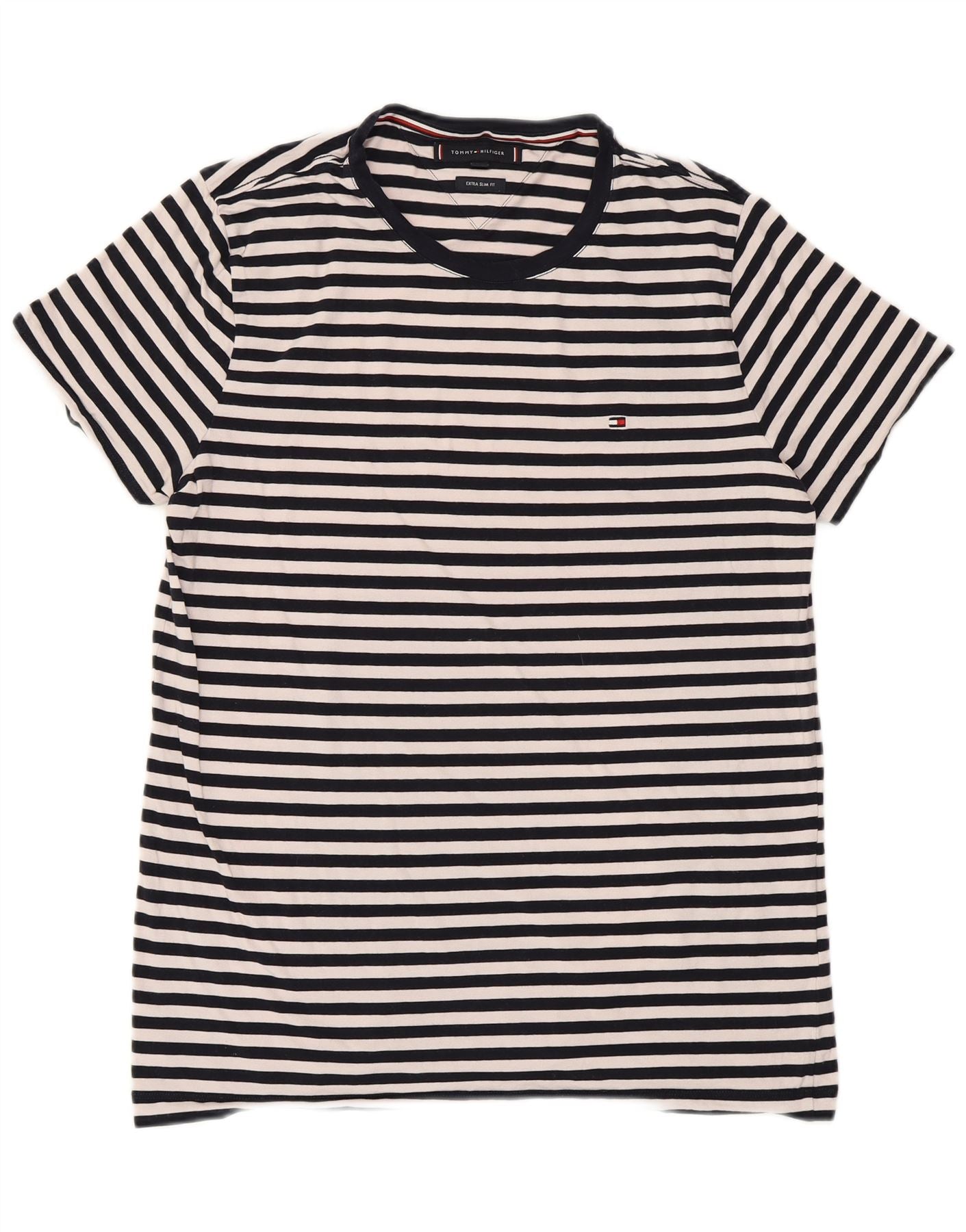 Camiseta masculina TOMMY HILFIGER extra slim grande algodão listrado azul marinho