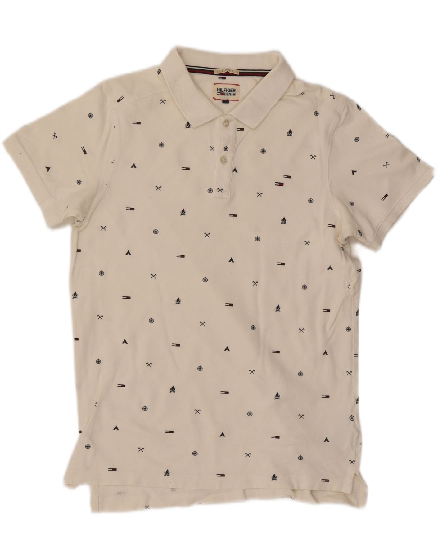 Camisa polo masculina TOMMY HILFIGER gráfica slim fit de algodão branco médio