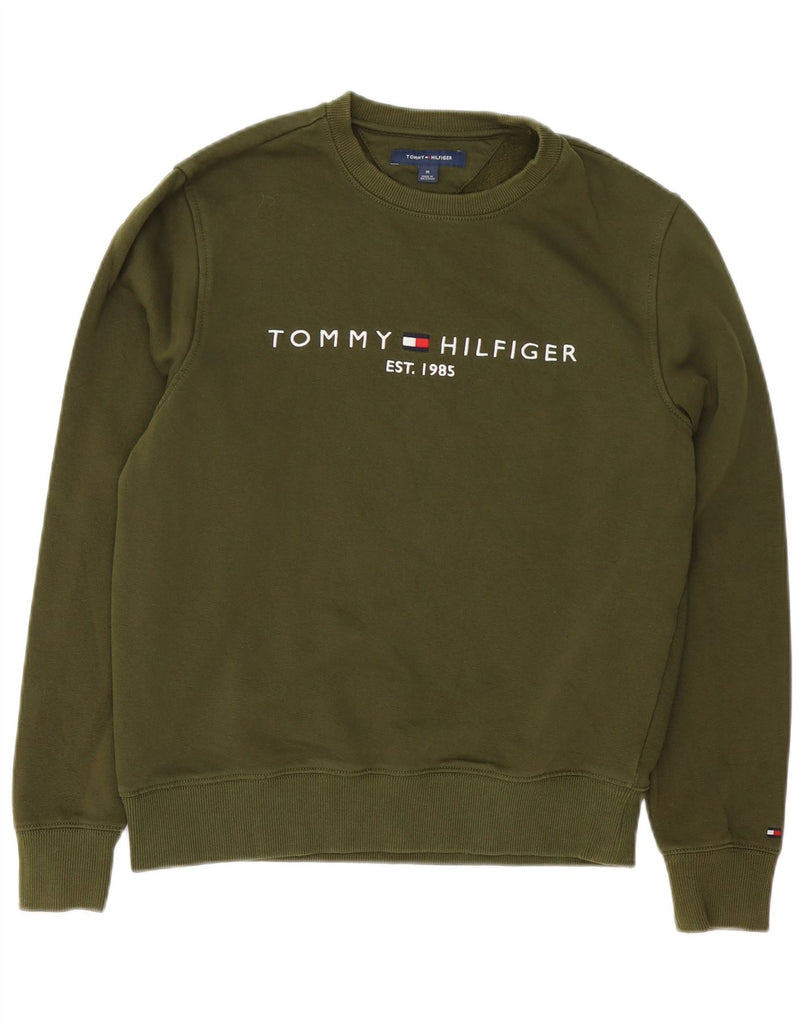 TOMMY HILFIGER Suéter gráfico masculino de algodão cáqui médio