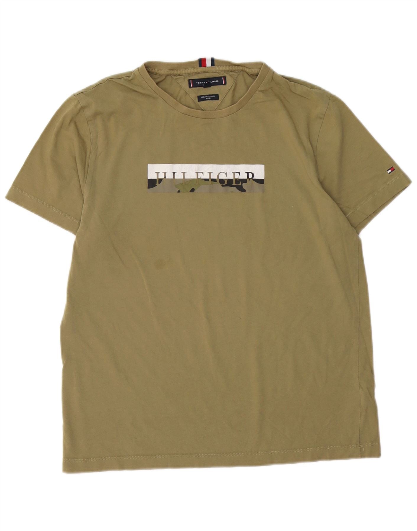 Camiseta masculina TOMMY HILFIGER com estampa gráfica de algodão cáqui médio