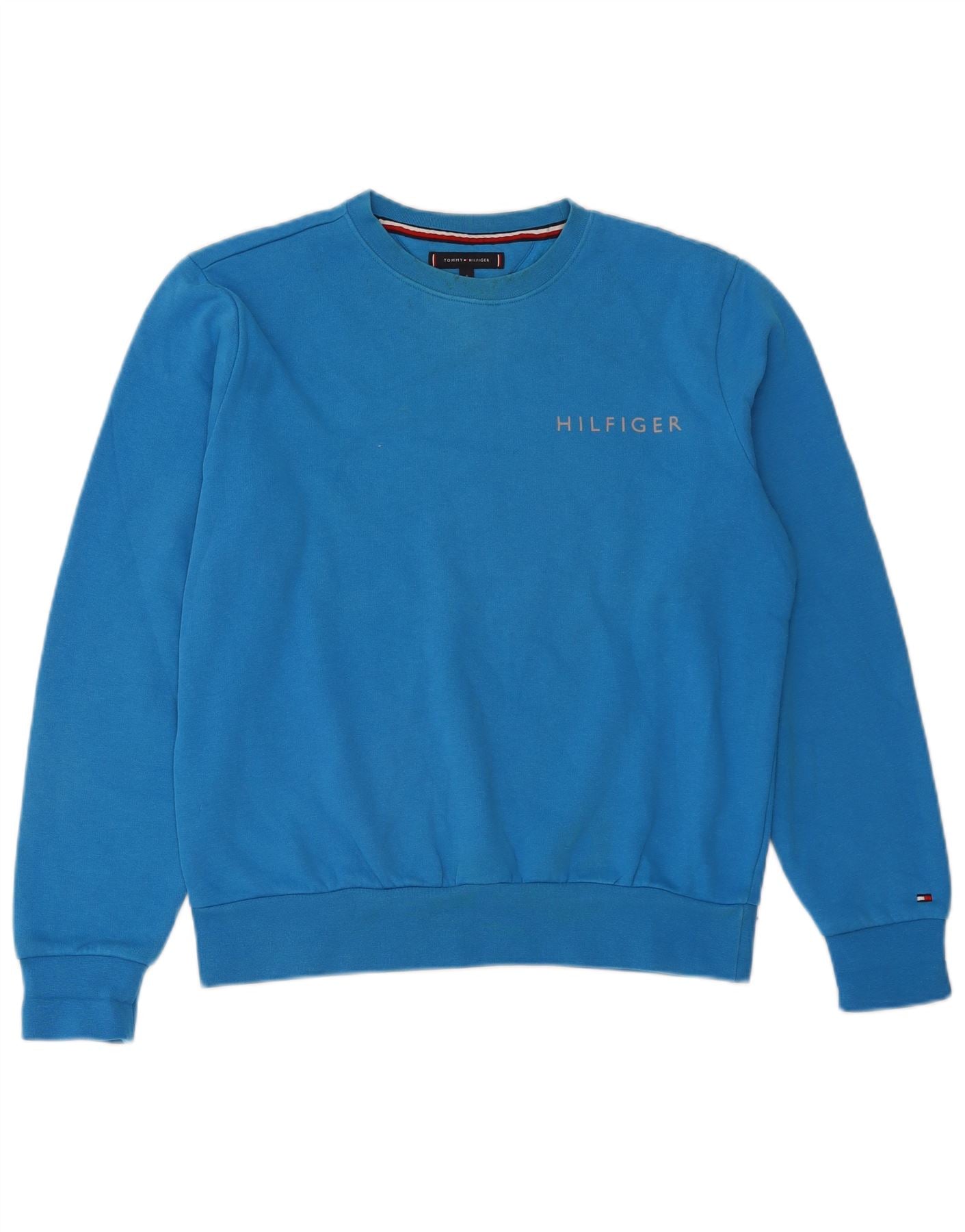 TOMMY HILFIGER Masculino solto ajuste moletom jumper pequeno algodão azul