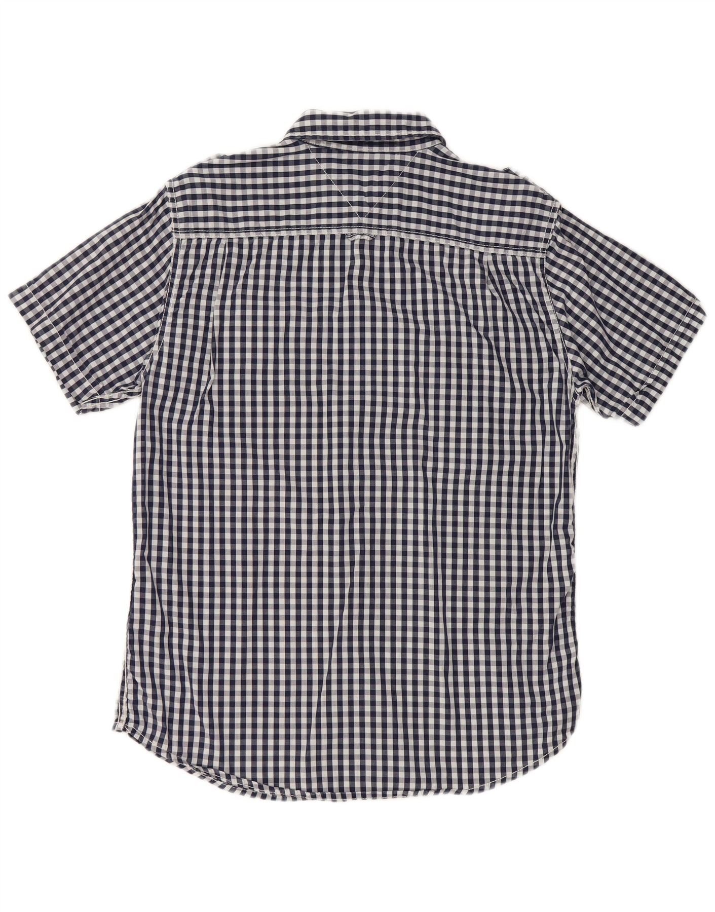 TOMMY HILFIGER Mens Military Short Sleeve Shirt Medium Navy Blue Gingham