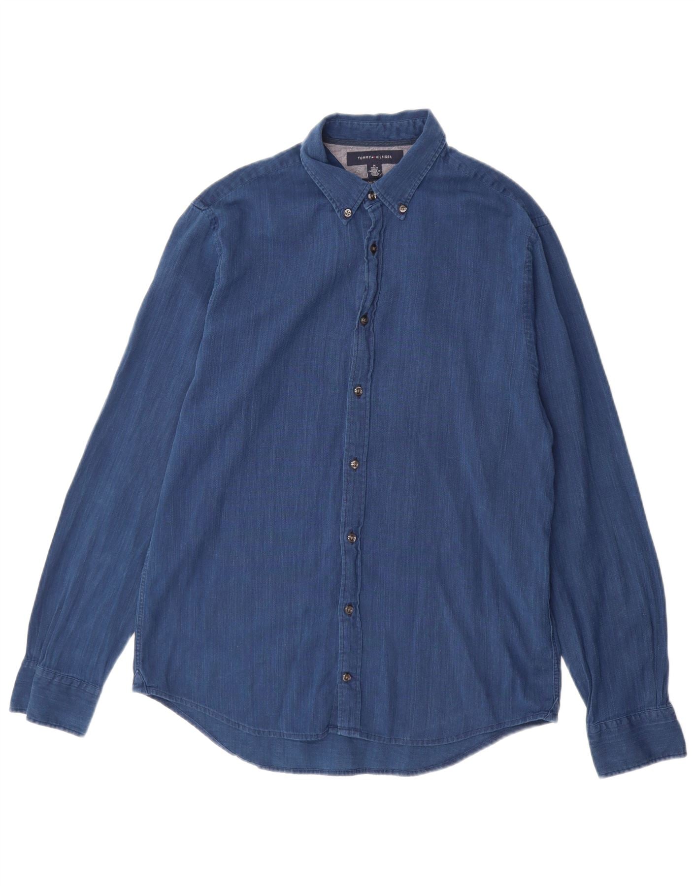 Camisa masculina TOMMY HILFIGER New York Fit algodão azul médio