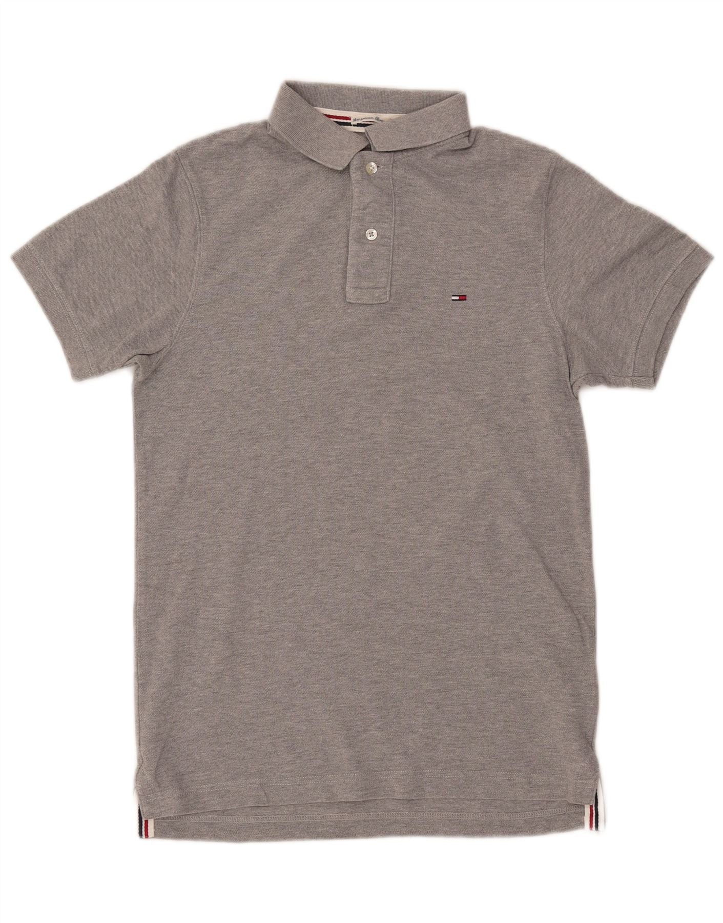 Camisa polo masculina TOMMY HILFIGER pequena algodão cinza