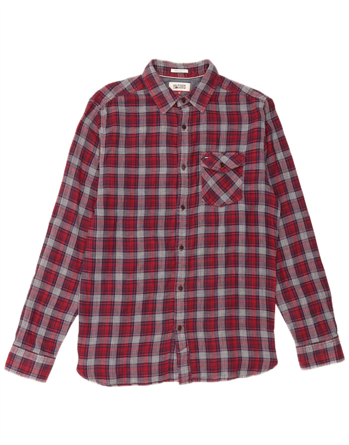 Camisa masculina de flanela Tommy Hilfiger Regular Fit algodão xadrez vermelho médio