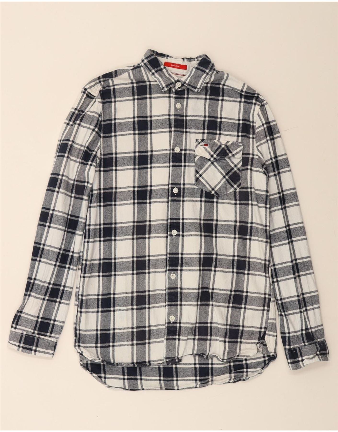 TOMMY HILFIGER Camisa masculina de flanela de ajuste regular pequena algodão xadrez azul marinho