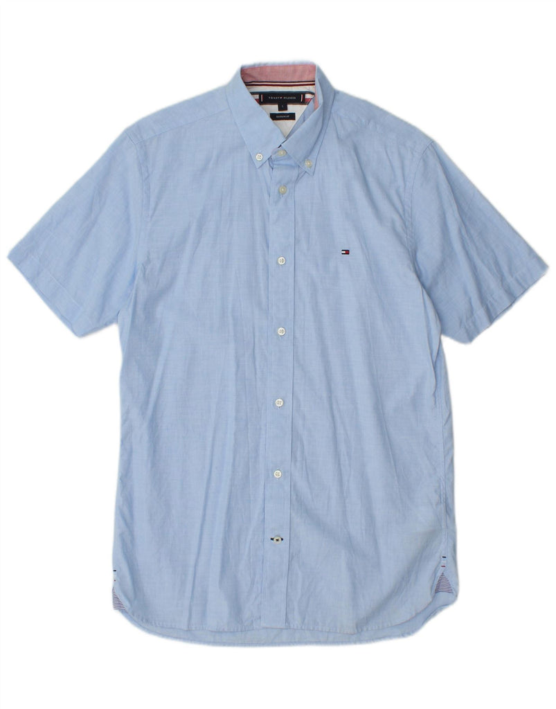 Camisa masculina TOMMY HILFIGER de manga curta regular fit pequena azul algodão