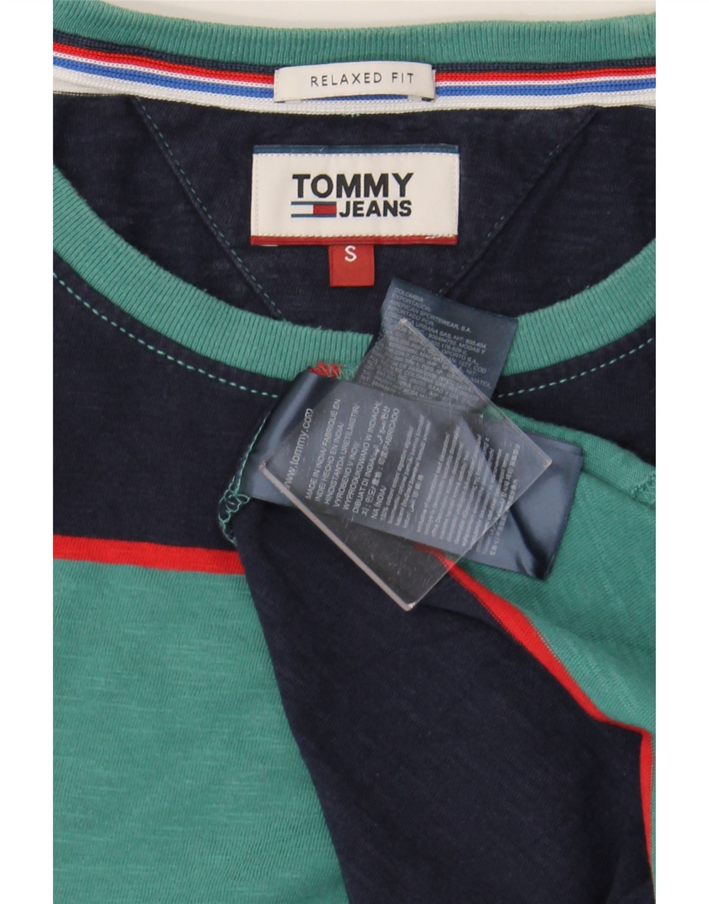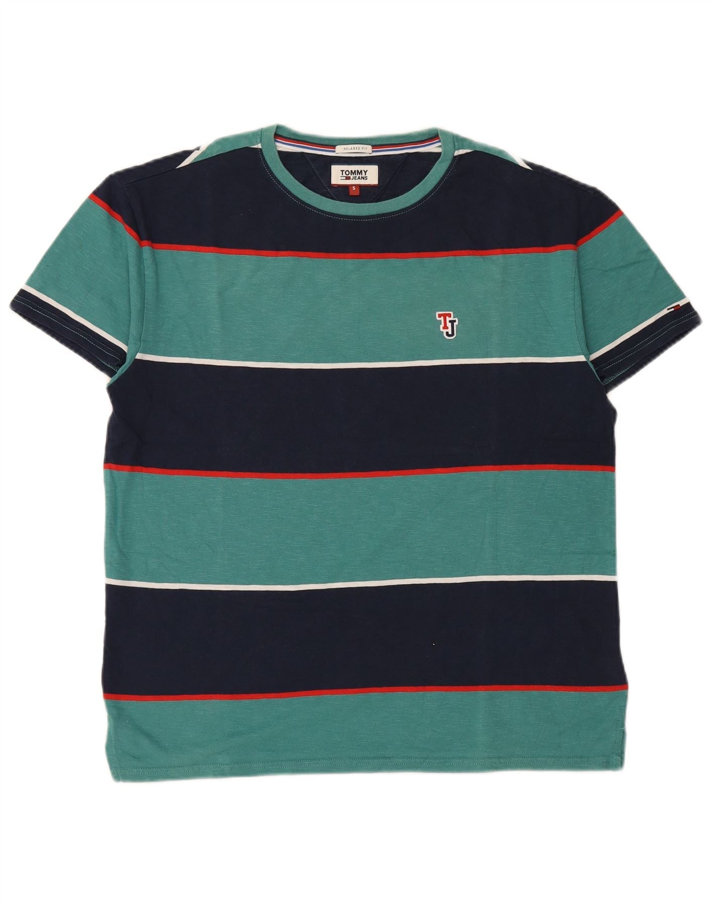 TOMMY HILFIGER Mens Relaxed Fit T-Shirt Top Small Green Striped Cotton