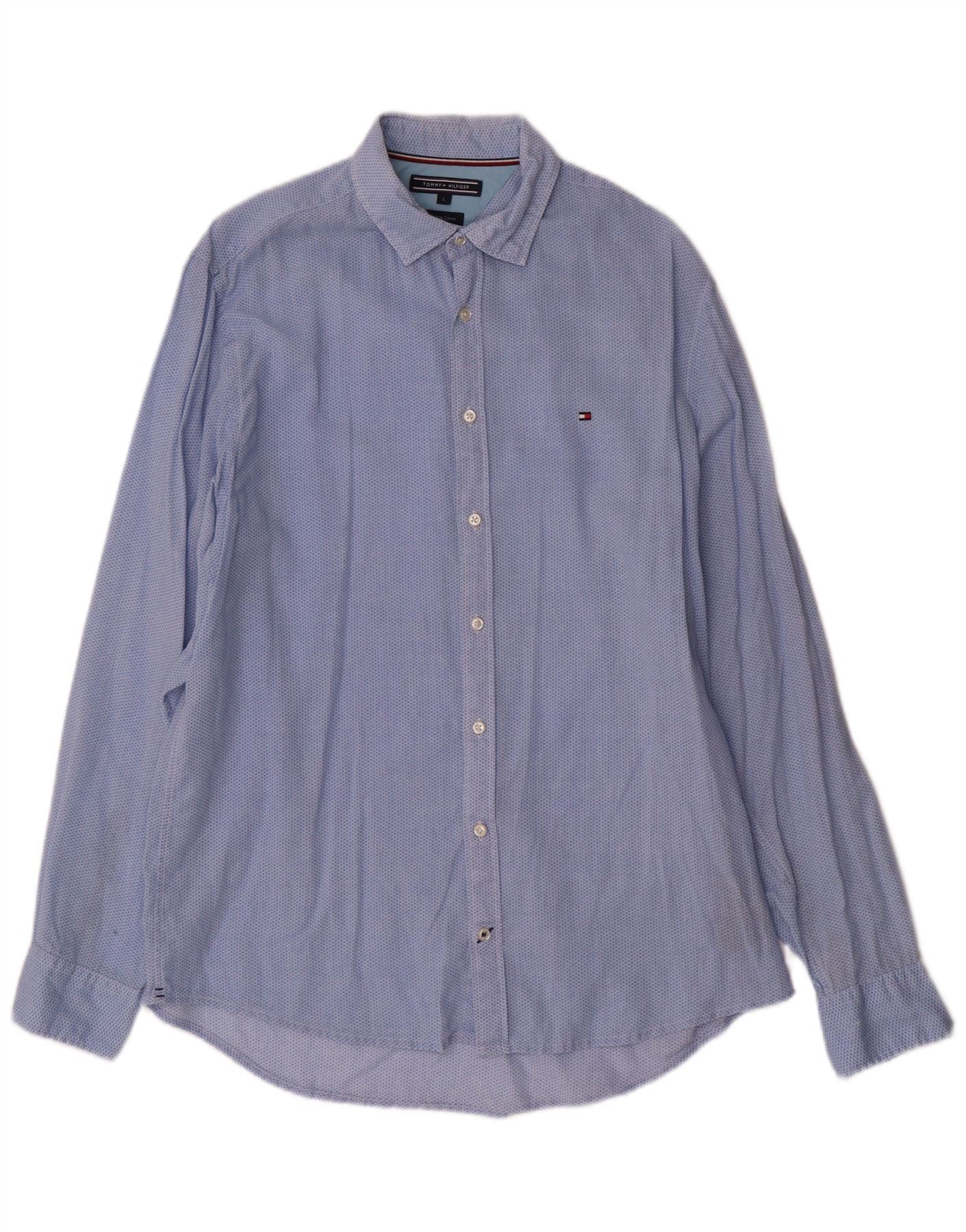 - Descrição da IA: Esta camisa masculina Tommy Hilfiger é confeccionada em uma mistura de linho de algodão respirável. Apresenta uma sensação suave e texturizada em um tom azul claro com um padrão geométrico sutil. O decote com gola e botões frontais completos oferecem um visual clássico. As mangas compridas terminam com punhos abotoados. Tem um ajuste regular confortável, perfeito para uso diário. Um pequeno logotipo bordado acrescenta um toque exclusivo a esta peça versátil.