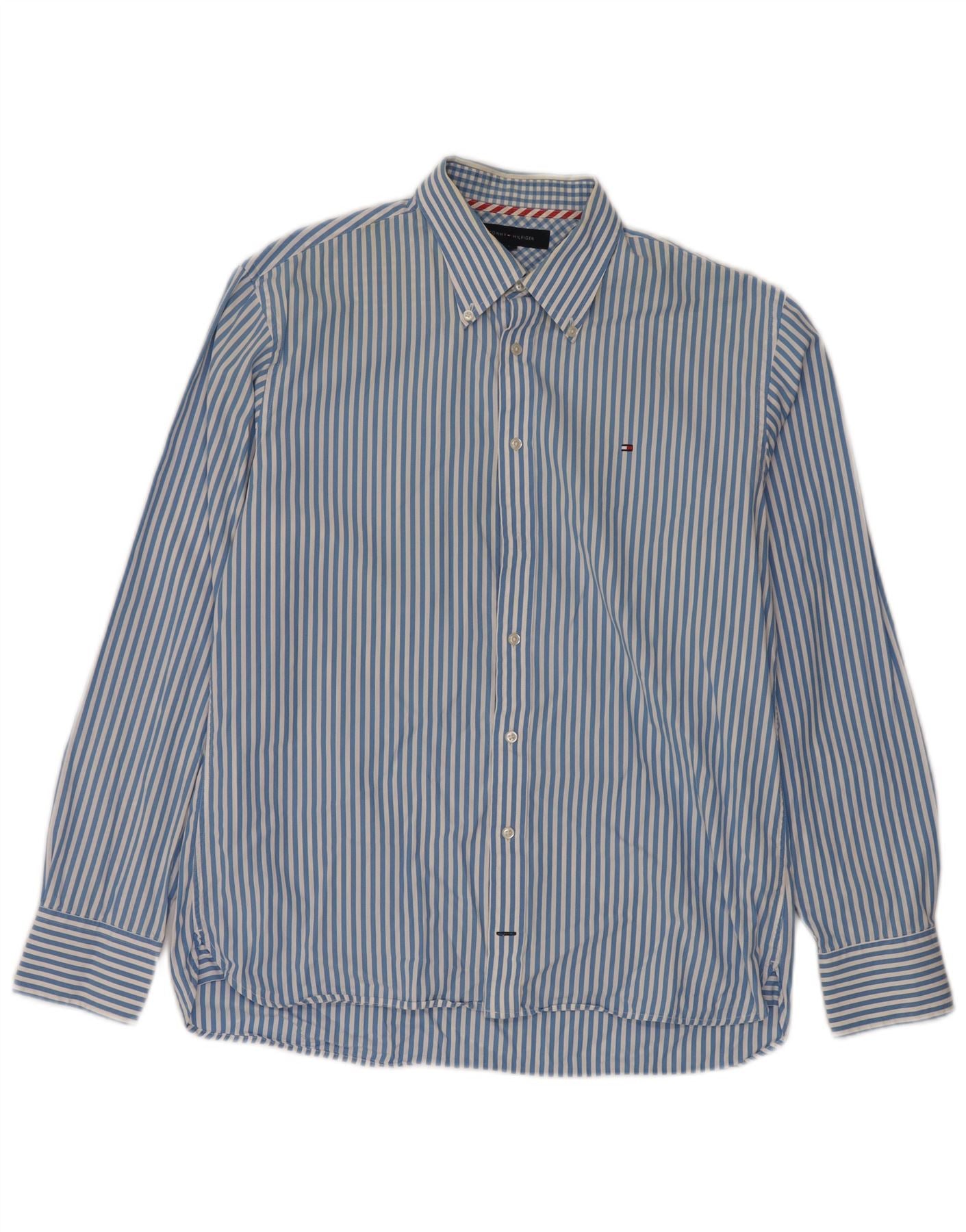 Camisa masculina TOMMY HILFIGER grande algodão listrado azul