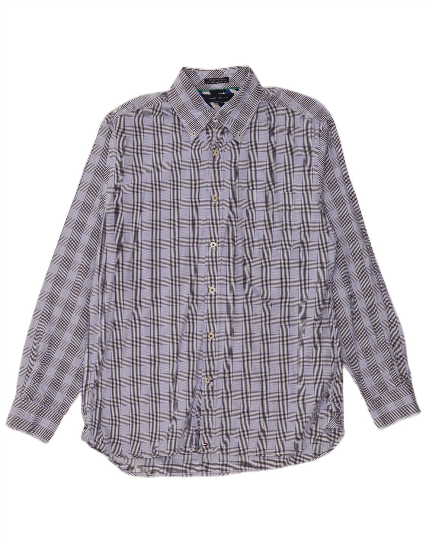 Camisa masculina TOMMY HILFIGER de algodão xadrez azul médio