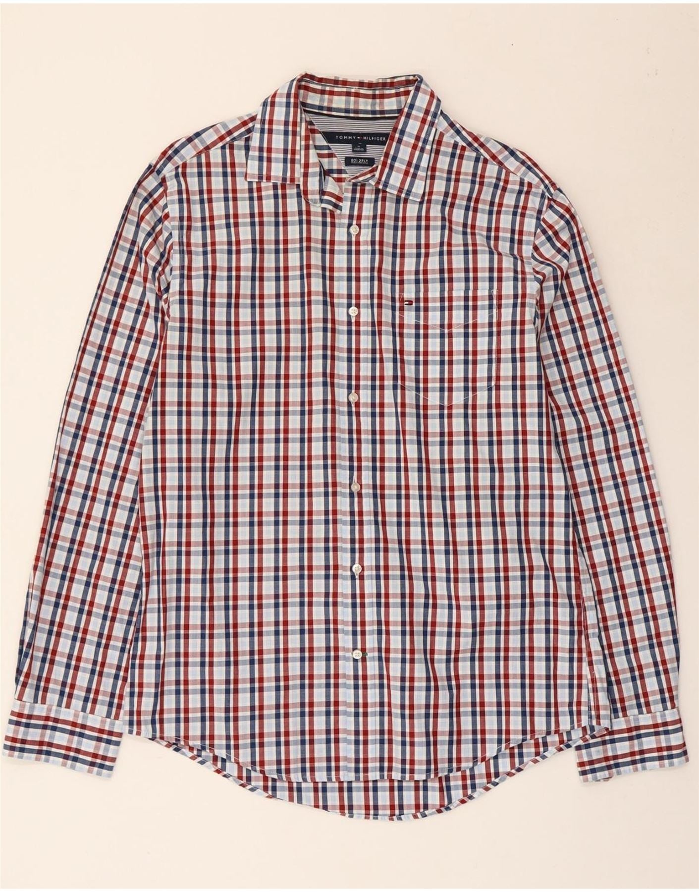 Camisa masculina Tommy Hilfiger média xadrez multicolorida de algodão