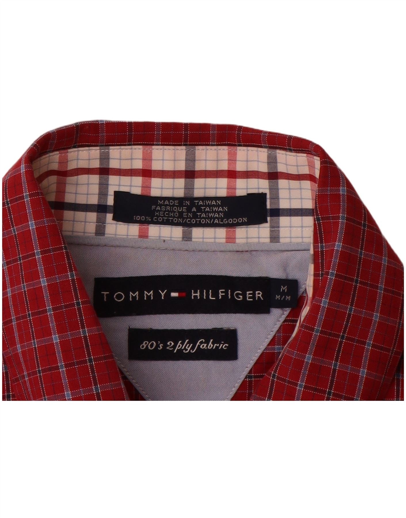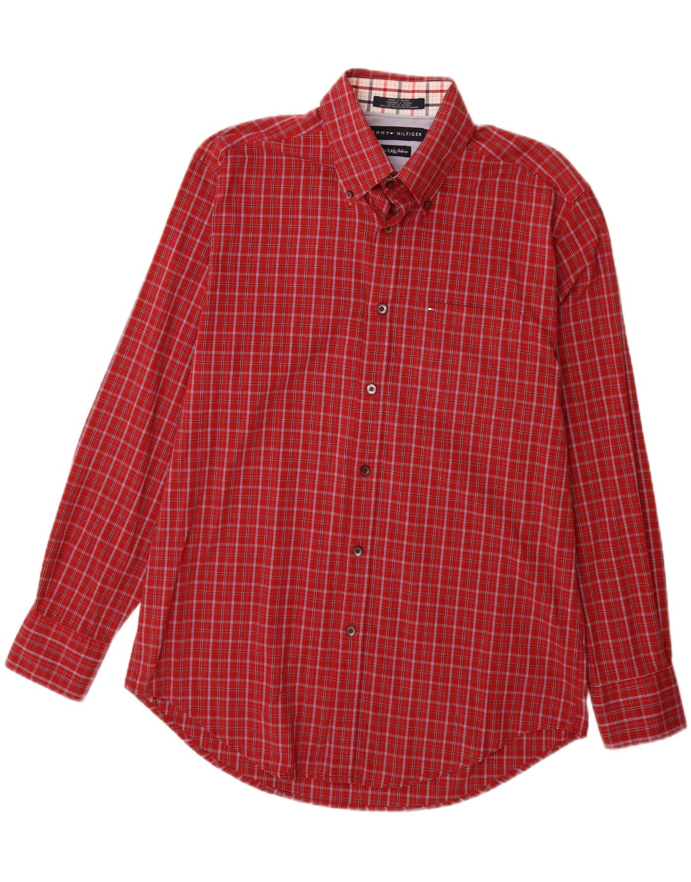 Camisa masculina TOMMY HILFIGER de algodão xadrez vermelho médio