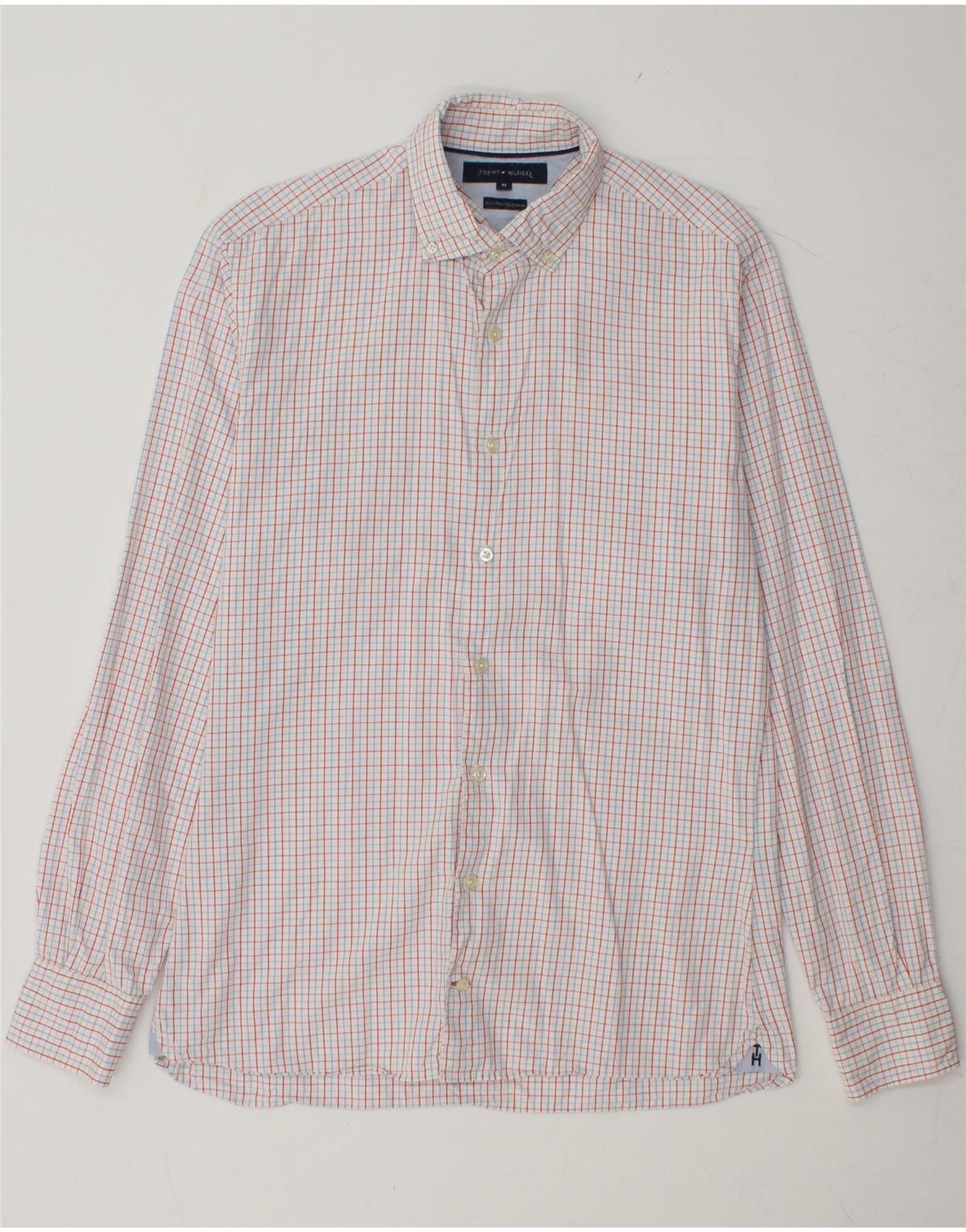 Camisa masculina TOMMY HILFIGER de algodão xadrez vermelho médio