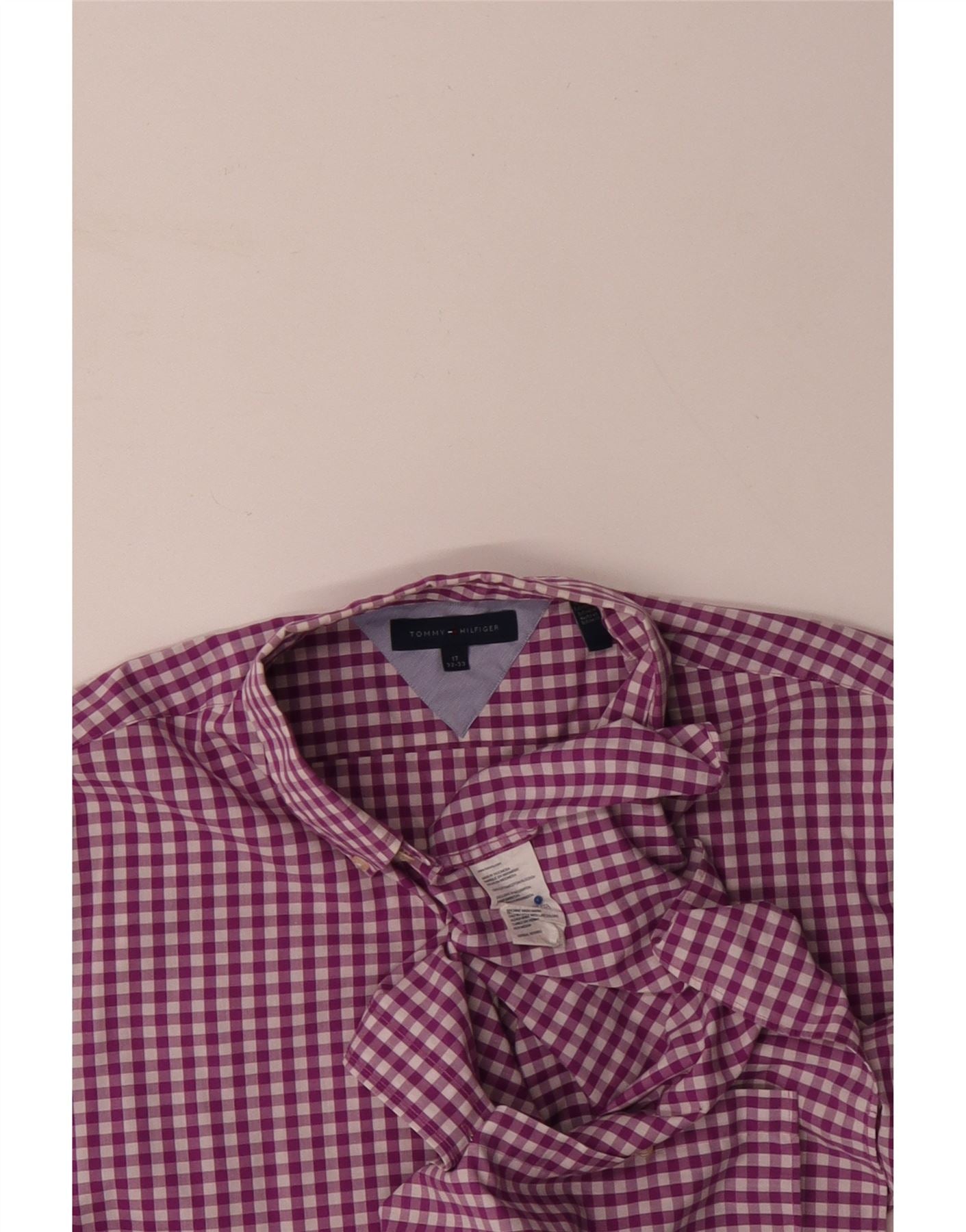 Camisa masculina TOMMY HILFIGER tamanho 17 XL algodão guingão roxo
