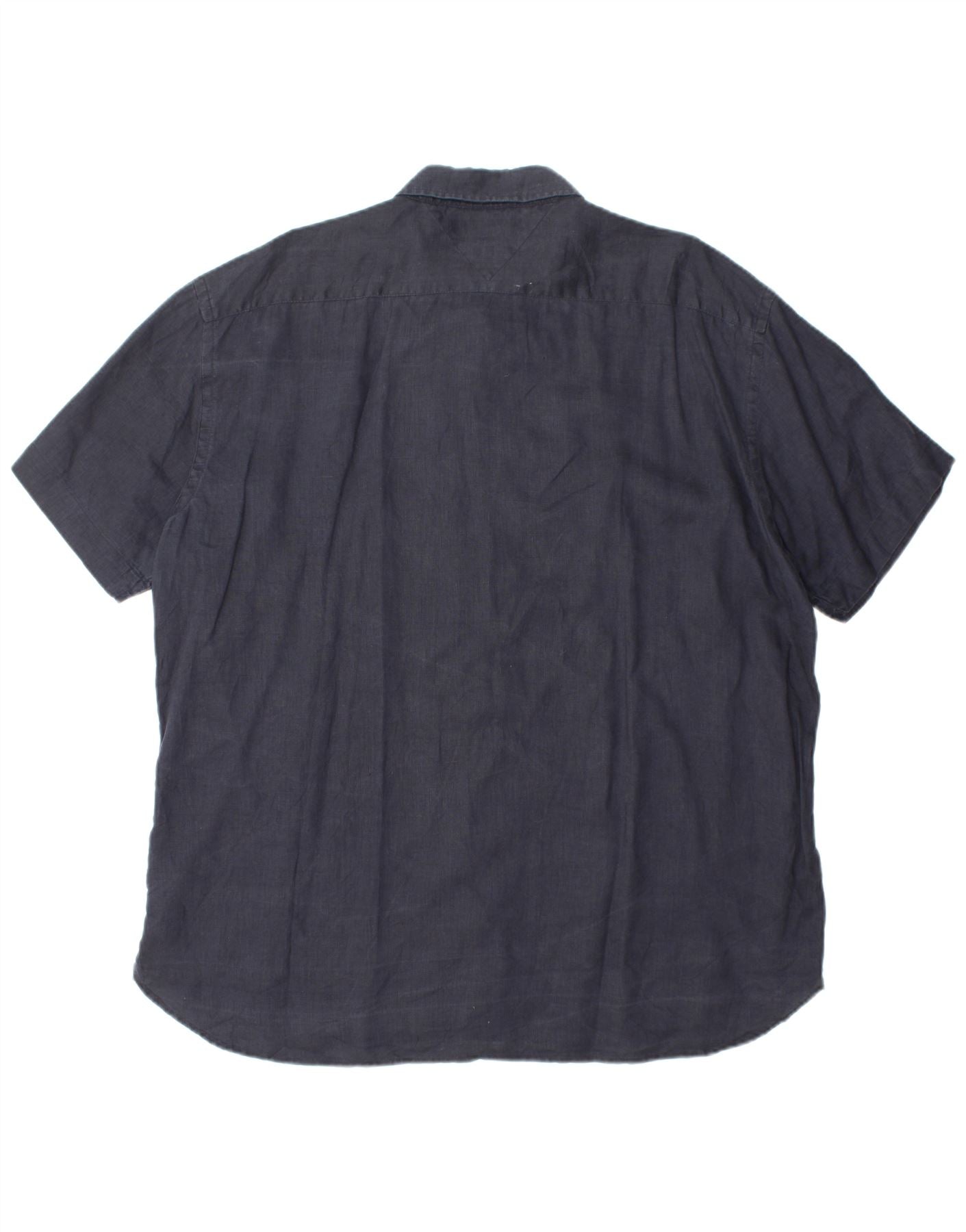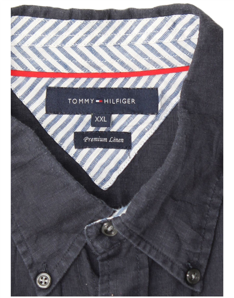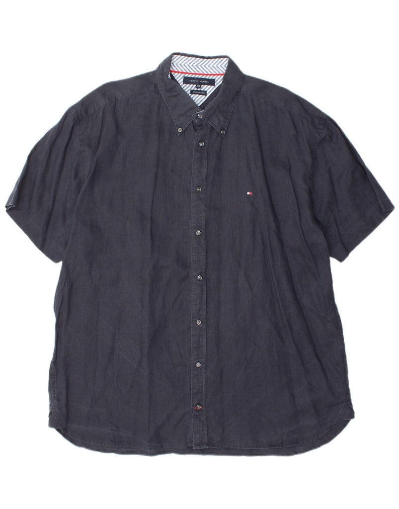Camisa masculina de manga curta TOMMY HILFIGER 2XL linho azul marinho