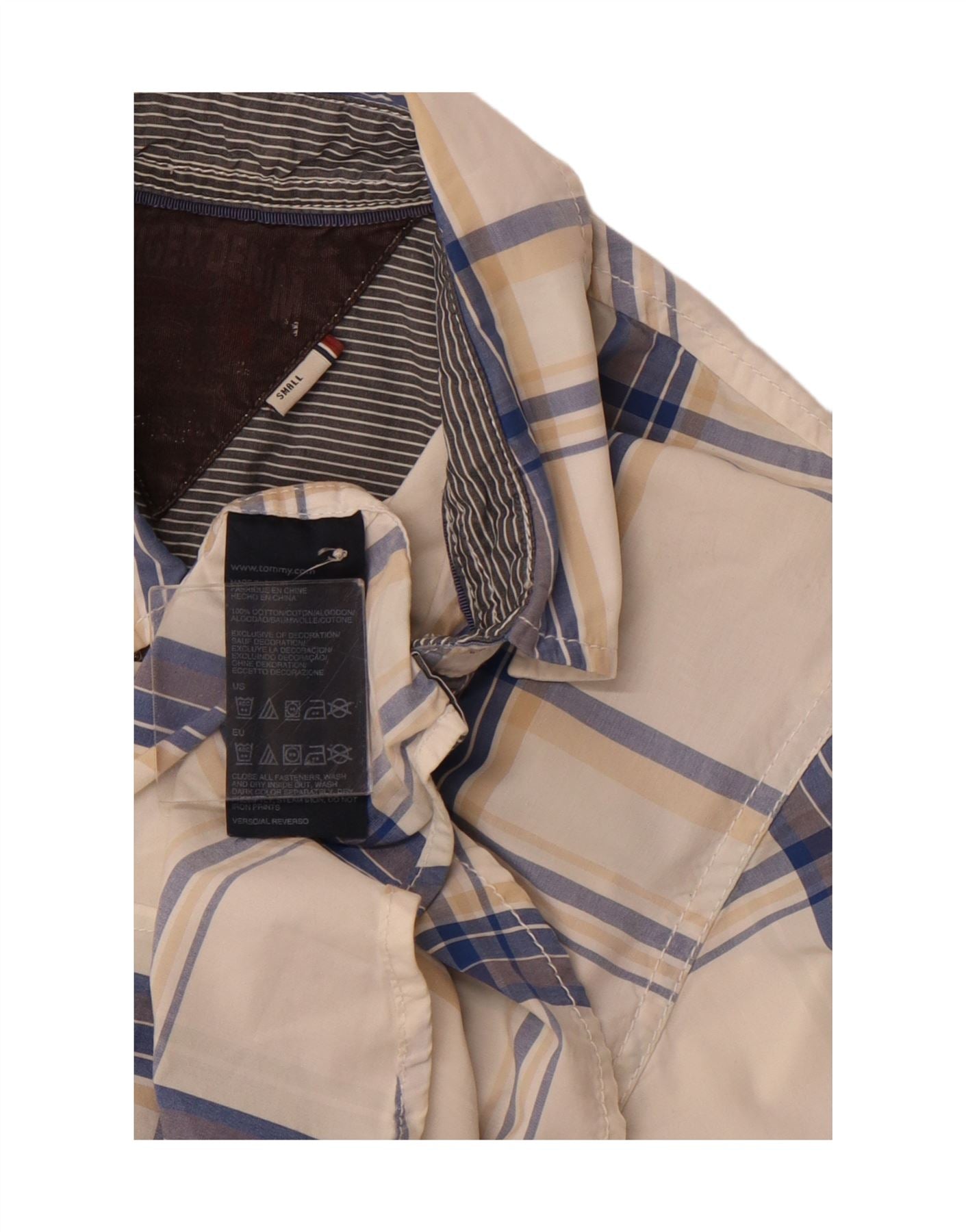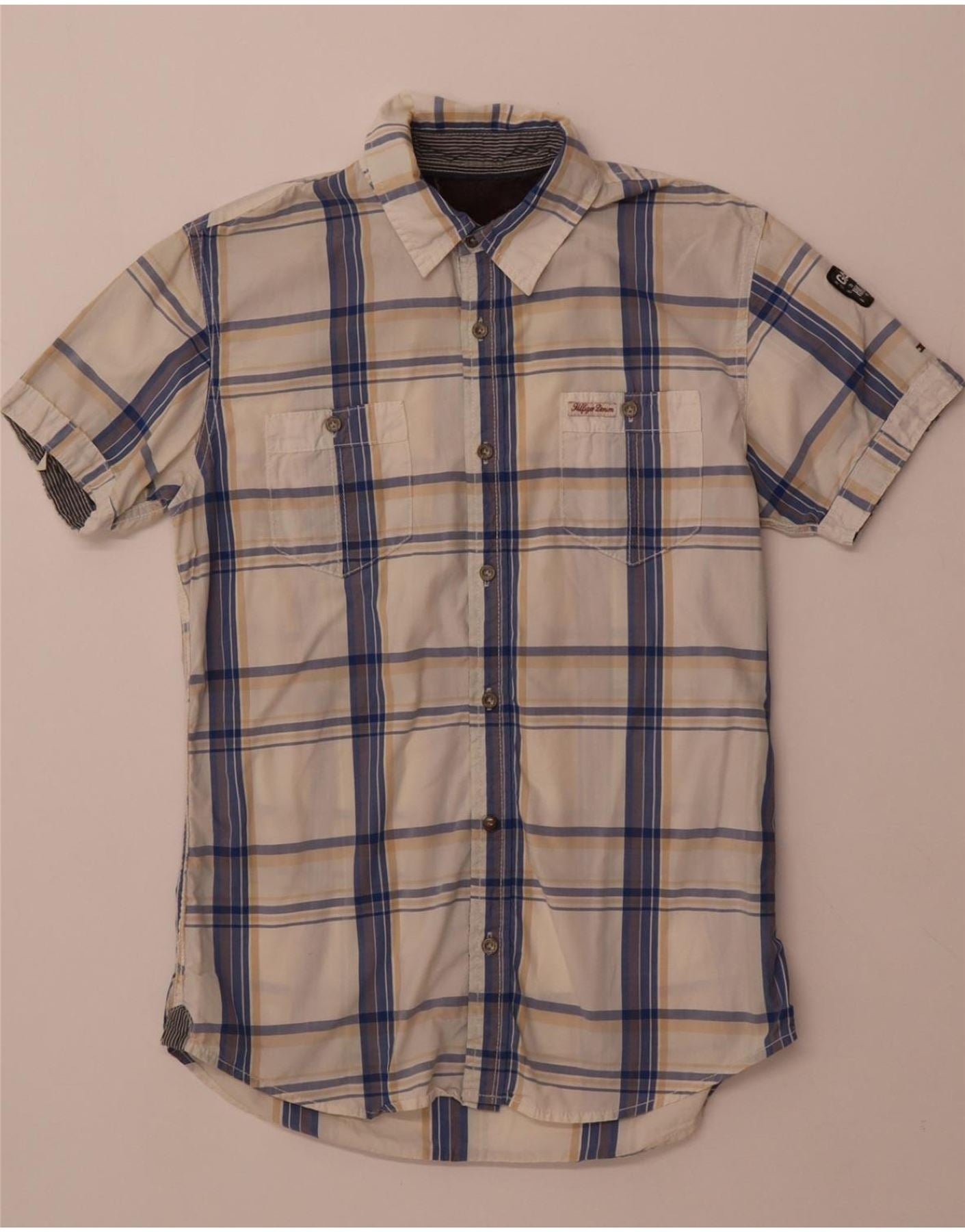 TOMMY HILFIGER Mens Short Sleeve Shirt Small Blue Check Cotton