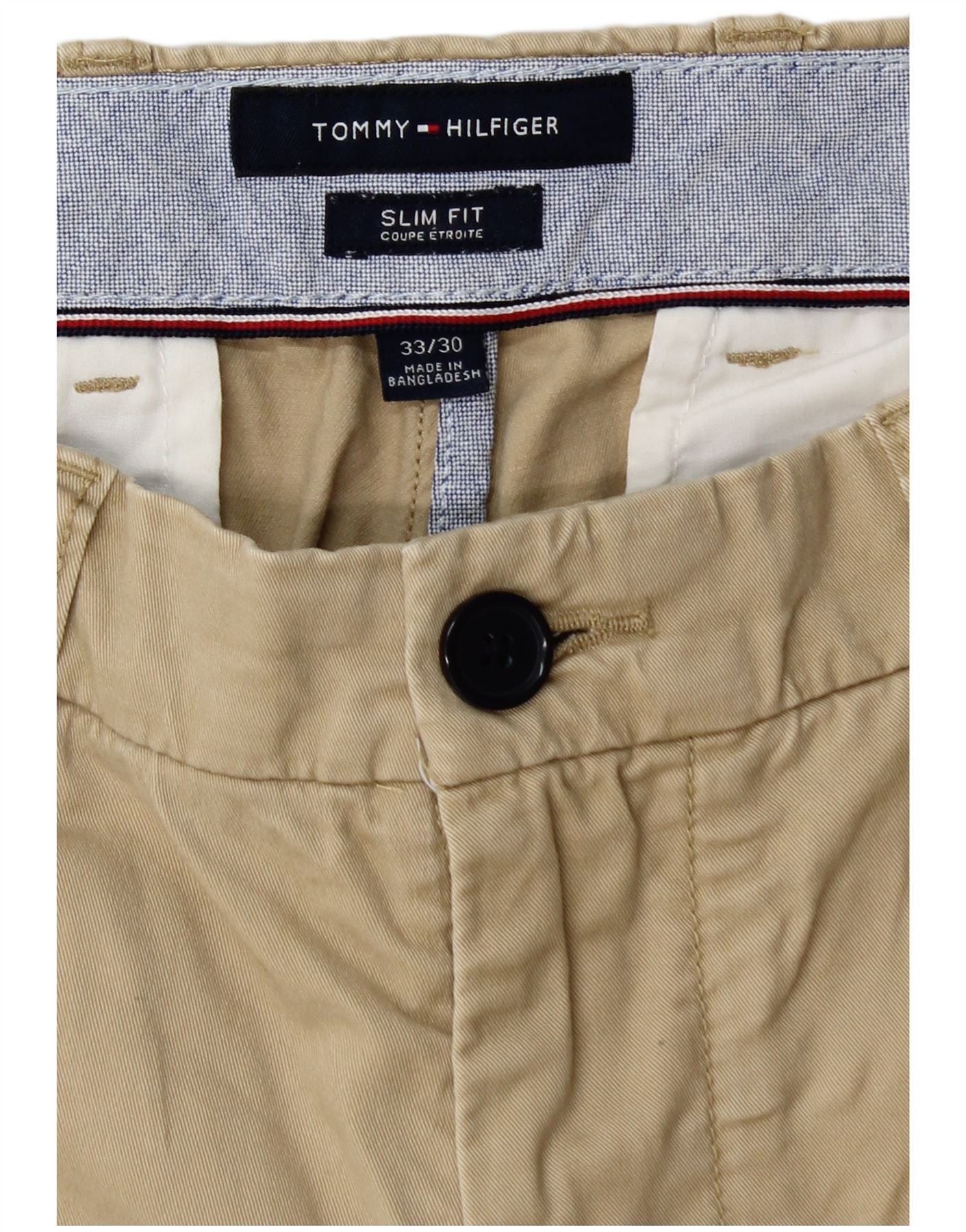 Calça Chino Masculina TOMMY HILFIGER Slim Fit W33 L28 Algodão Bege