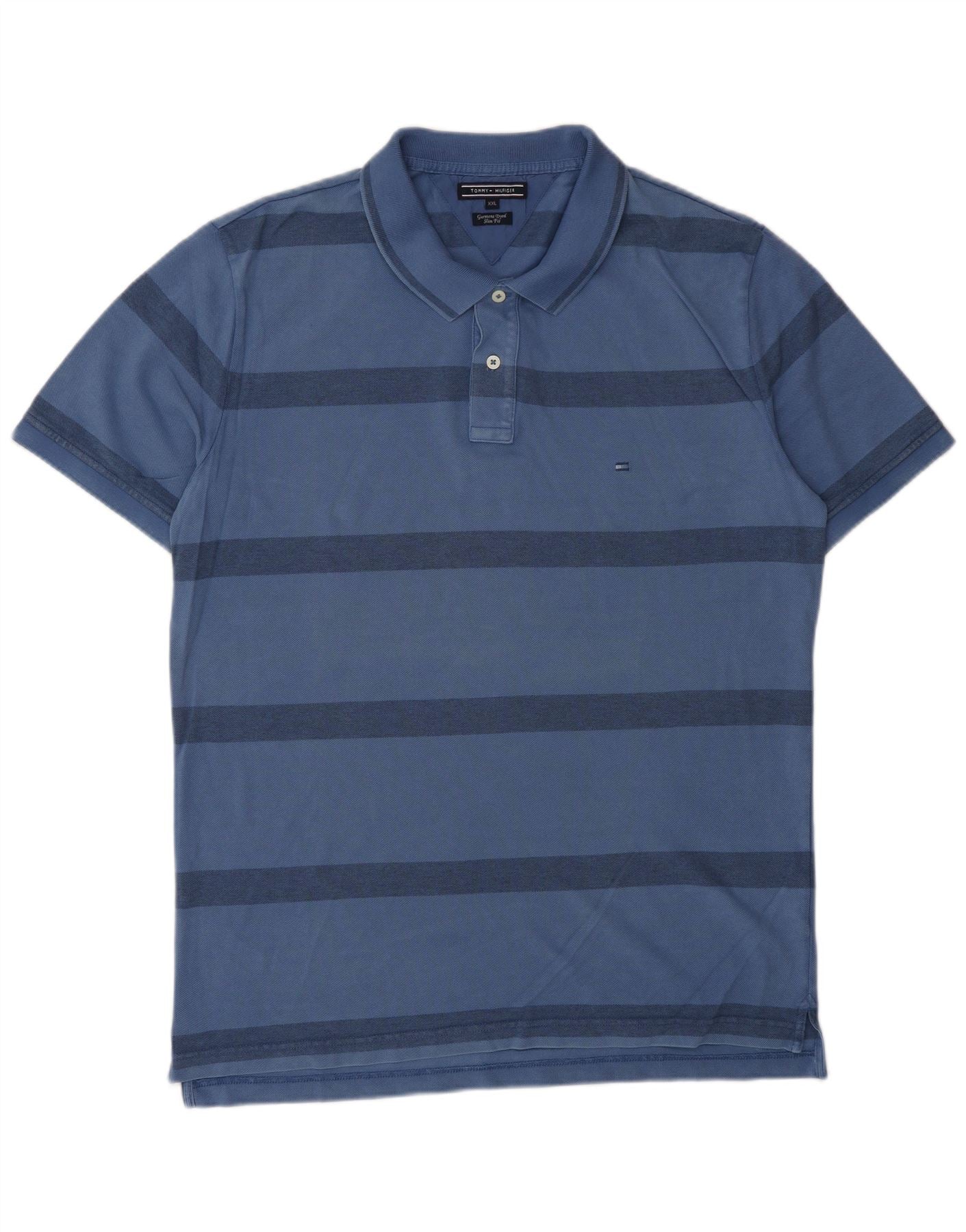 Camisa polo masculina TOMMY HILFIGER Slim Fit 2XL algodão listrado azul