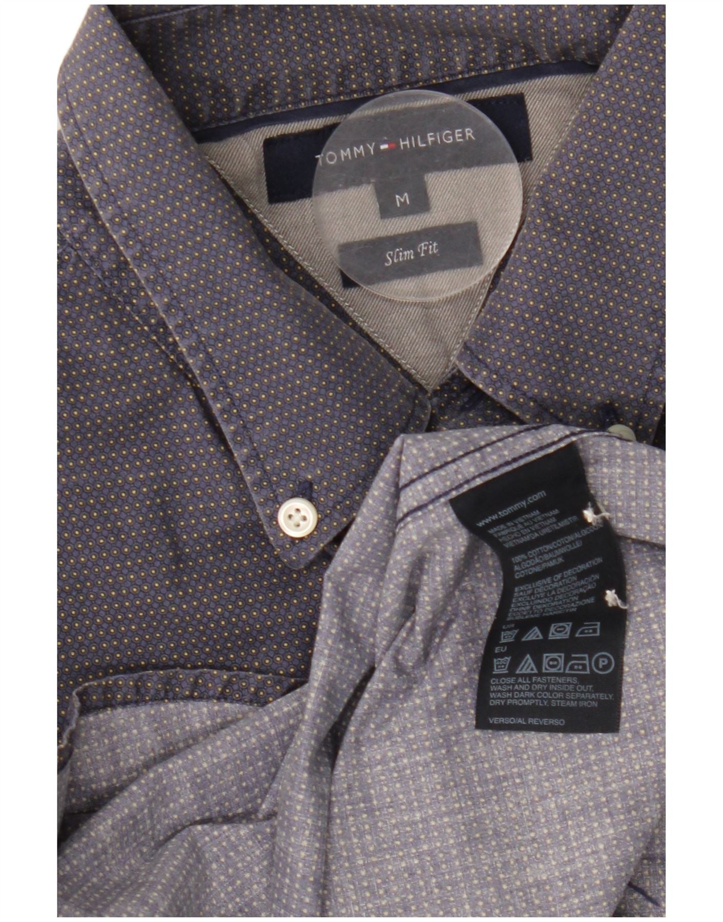 Camisa masculina TOMMY HILFIGER slim fit médio algodão manchado azul marinho