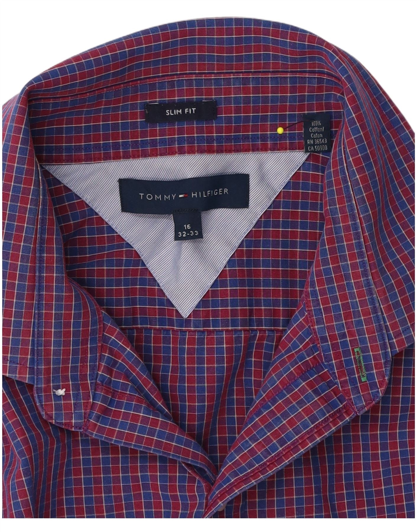 Camisa masculina Tommy Hilfiger Slim Fit tamanho 16 grande algodão xadrez azul