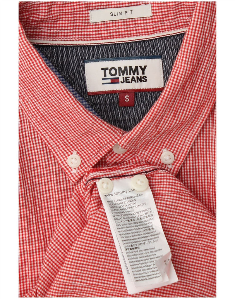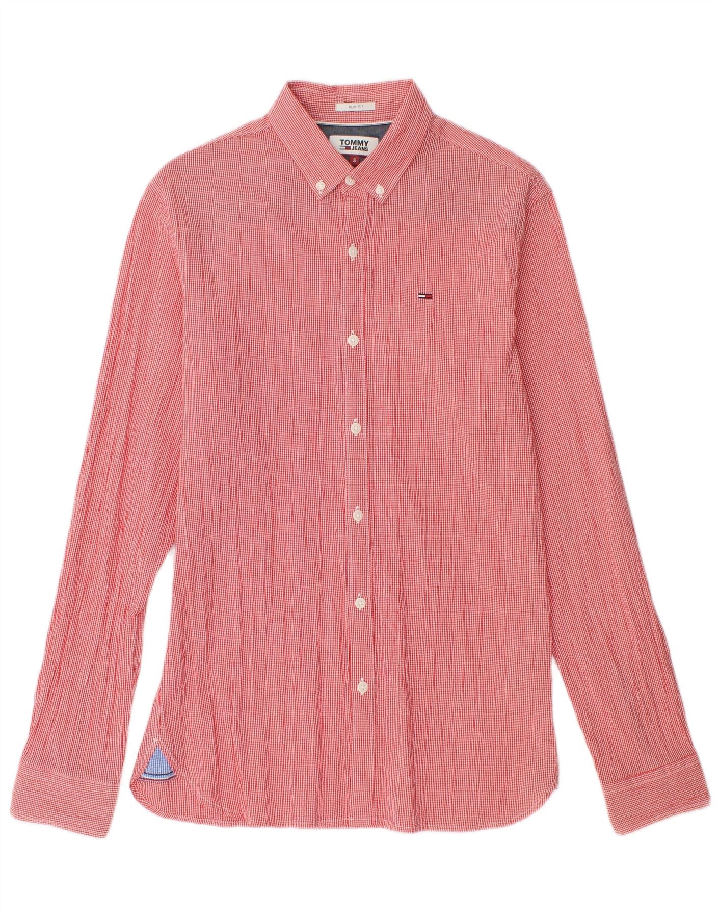 Camisa masculina TOMMY HILFIGER slim fit pequena listrada vermelha de algodão