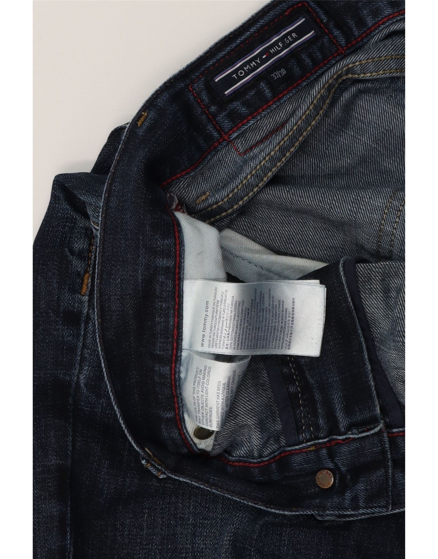 TOMMY HILFIGER Jeans reto masculino W32 L27 algodão azul marinho