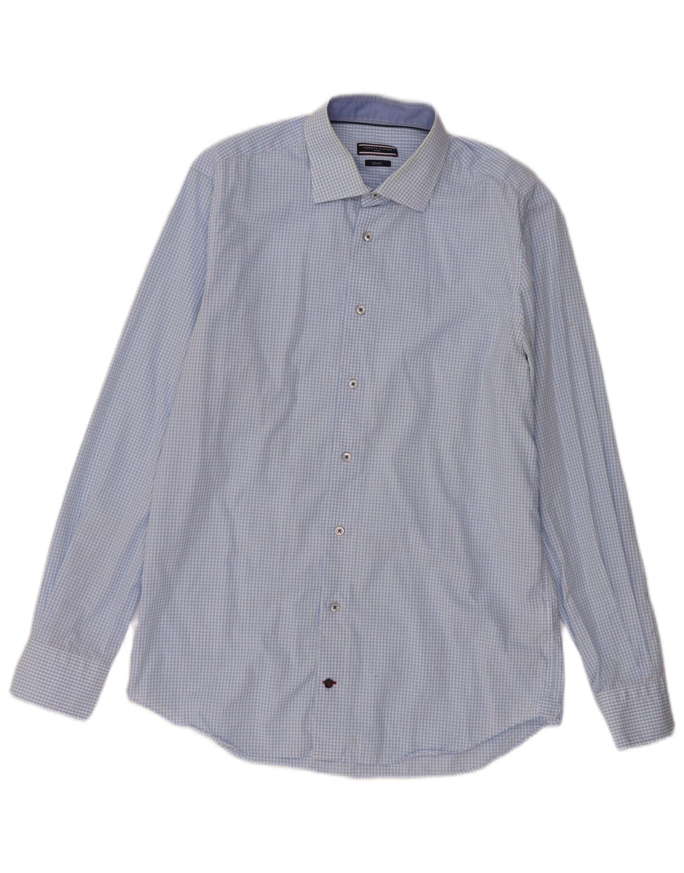 Tommy Hilfiger camisa masculina sob medida tamanho 40 15 3/4 médio azul guingão