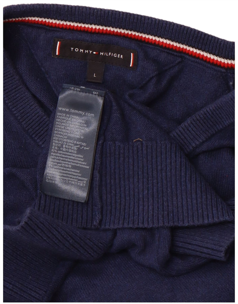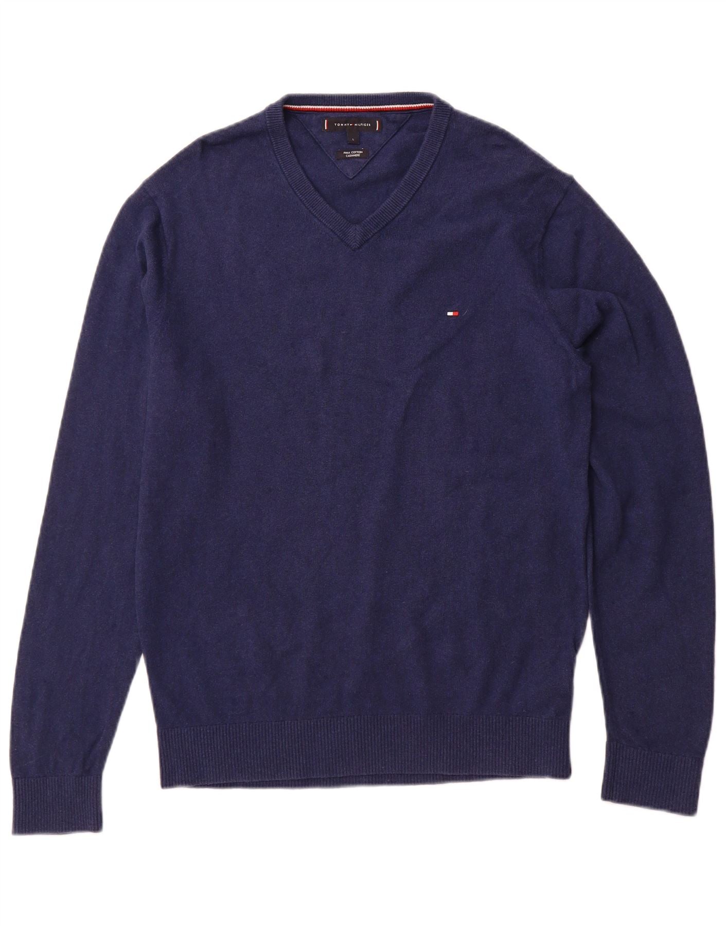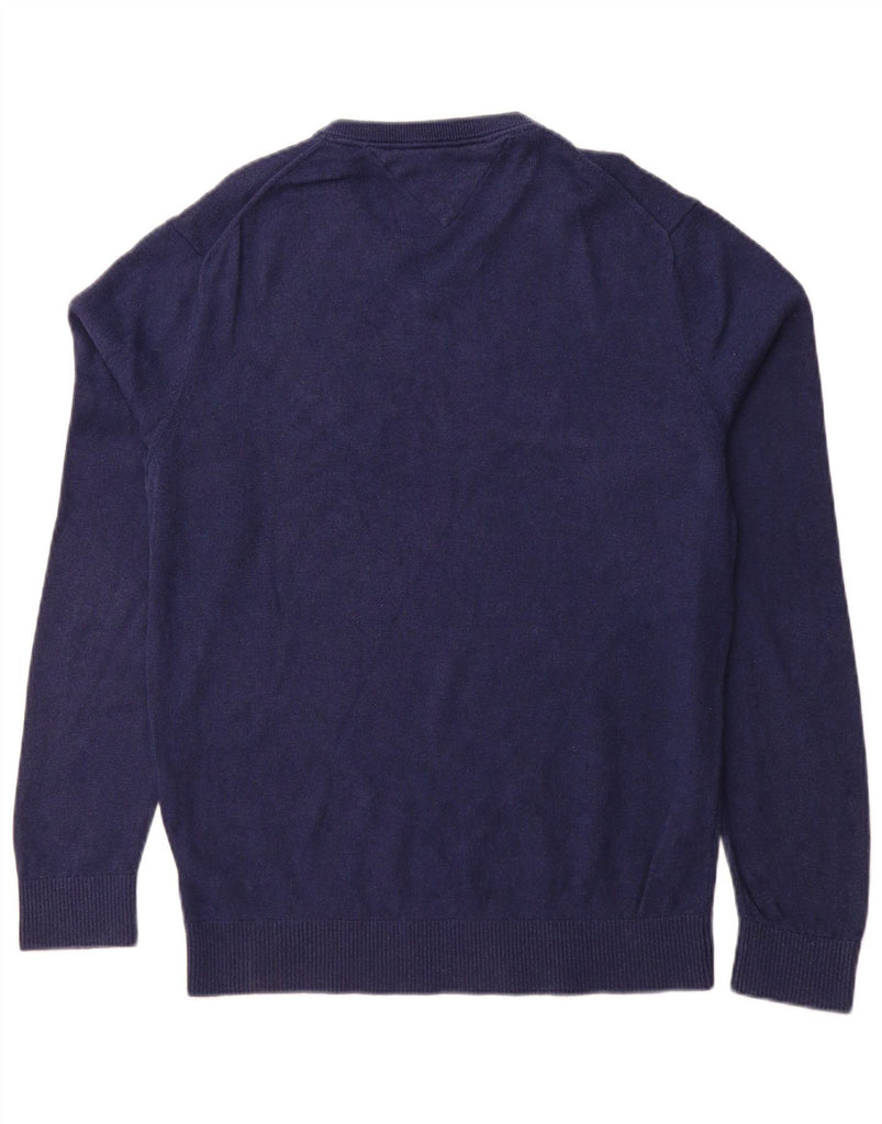 TOMMY HILFIGER Mens V-Neck Jumper Sweater Large Navy Blue Cotton