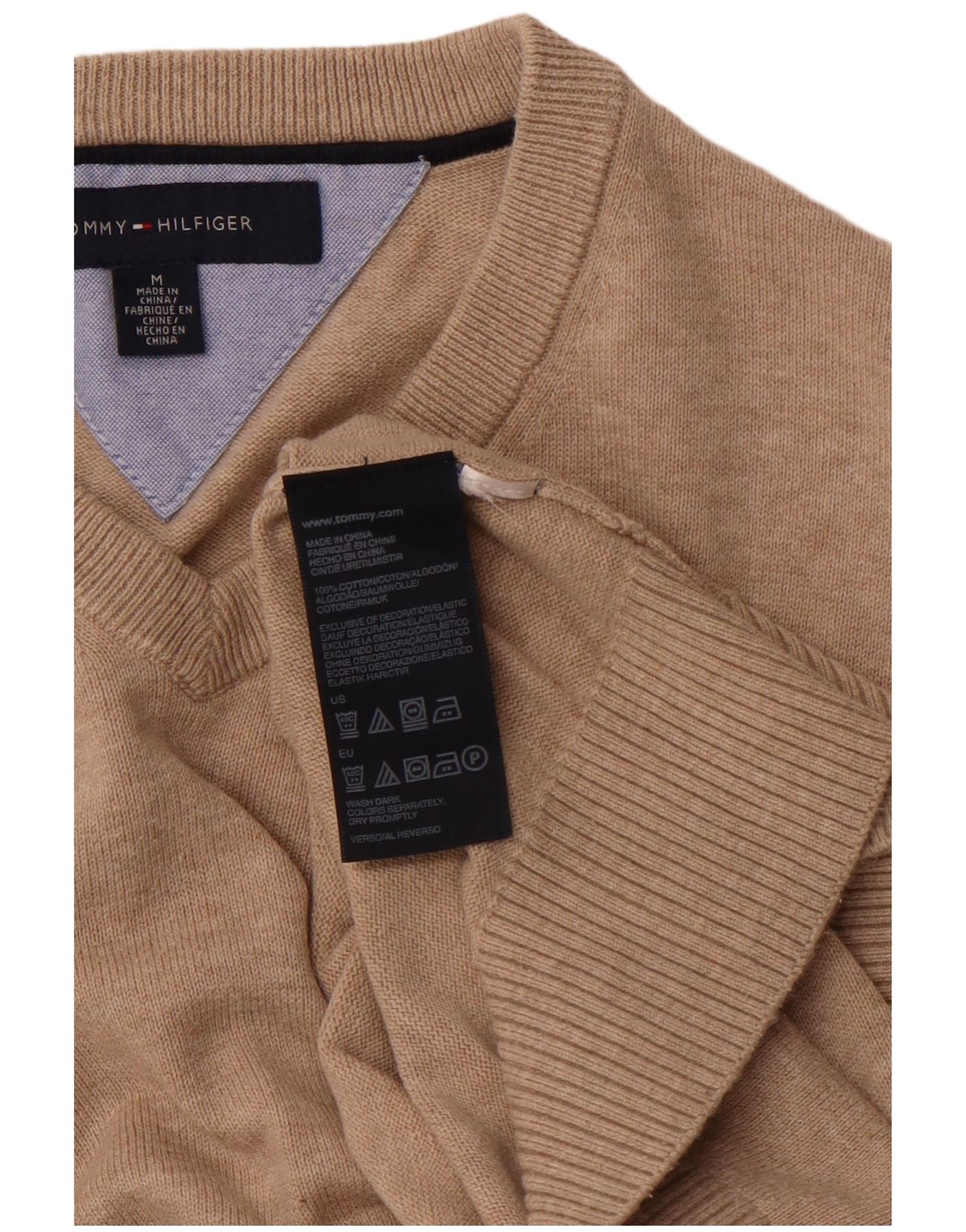 Suéter masculino TOMMY HILFIGER com decote em V de algodão bege médio