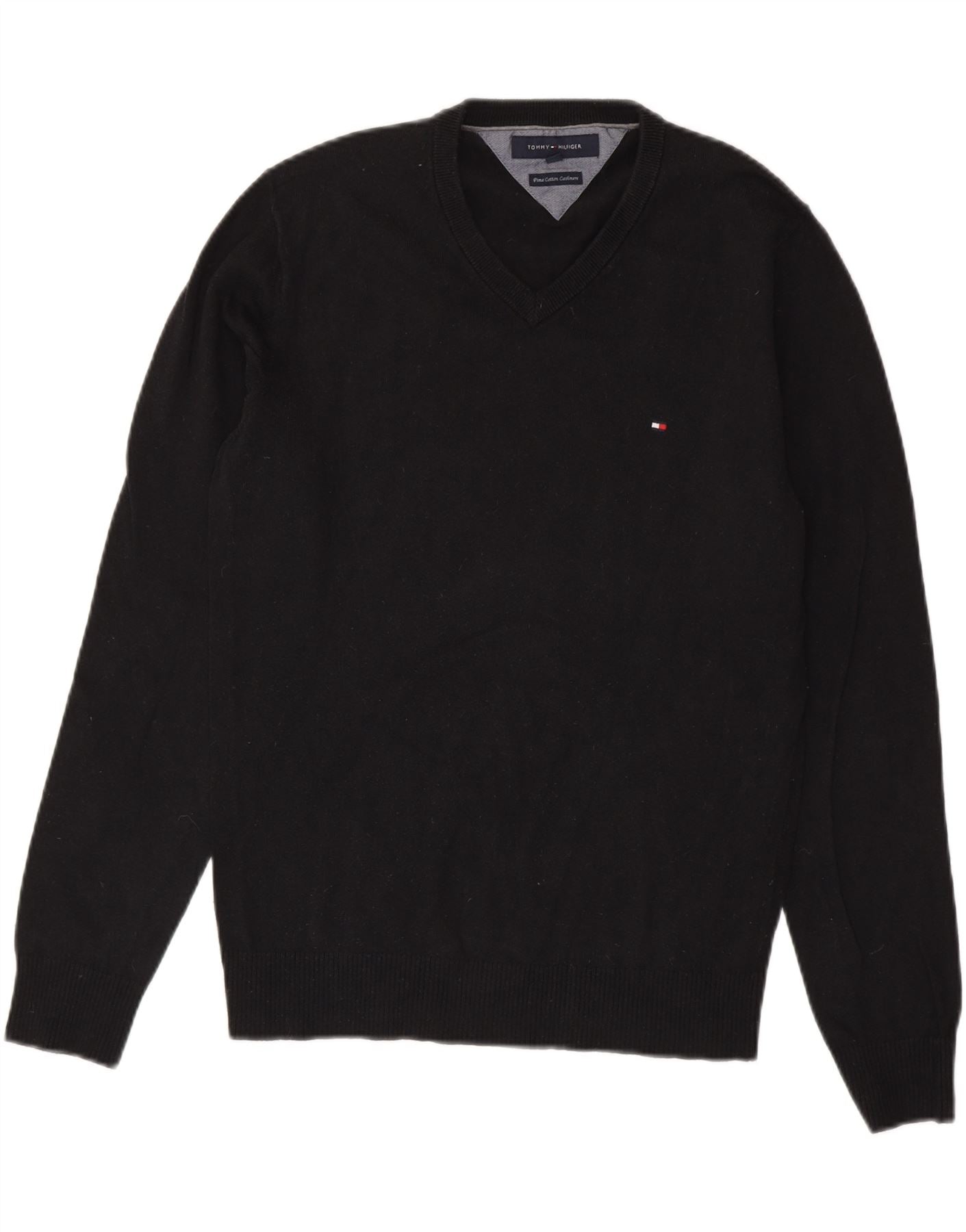Suéter masculino TOMMY HILFIGER com decote em V pequeno algodão preto