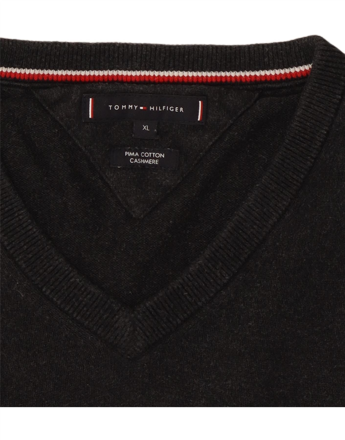 Suéter masculino TOMMY HILFIGER com decote em V XL algodão cinza