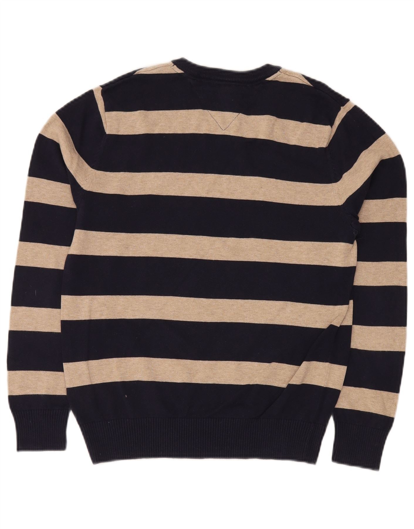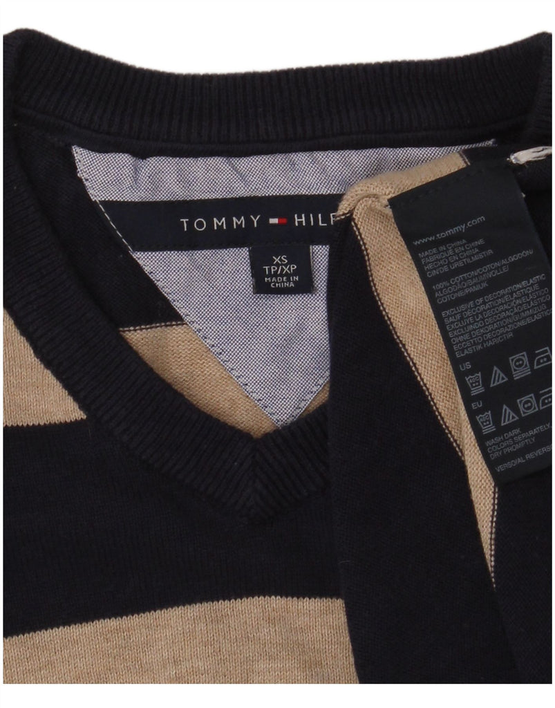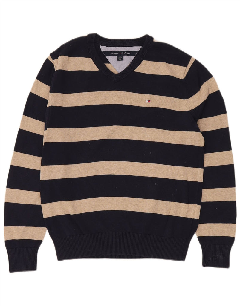 Suéter masculino TOMMY HILFIGER com decote em V XS azul marinho listrado algodão