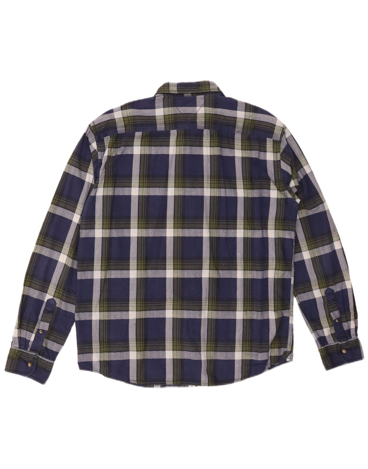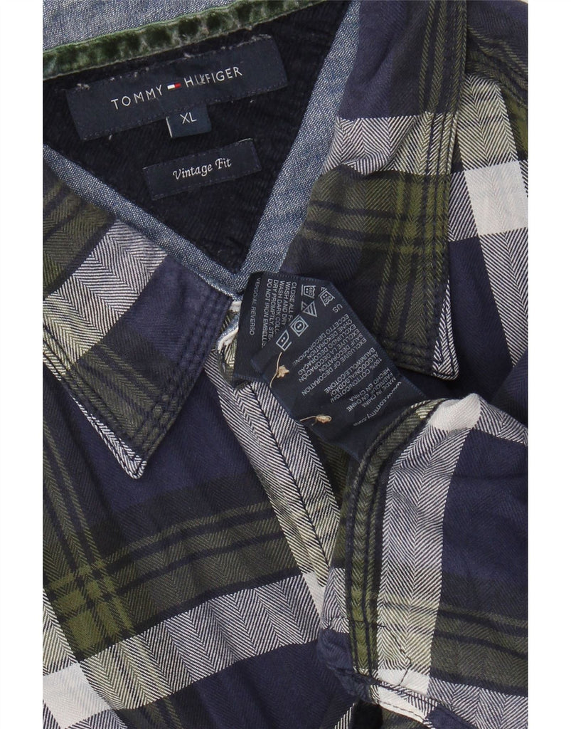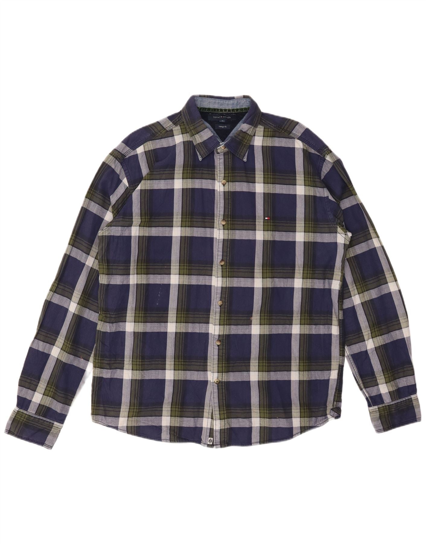 TOMMY HILFIGER Camisa masculina de flanela vintage fit XL azul marinho algodão xadrez